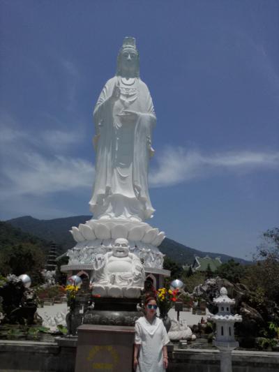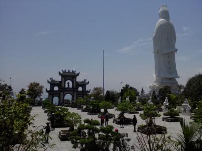 歩いて行ってみました。まさかそのような酔狂な人はいないと思うので参考にはならないと思いますが一応情報を…。ミーケービーチからならおよそ8km。途中1箇所分かれ道がありますがちゃんと看板がありますし、なにせビーチから白い大きな観音像が見えているのでそれを目指せば間違いないです。私は行けるとこまでビーチを歩いて行きましたがこれが結構疲れる。砂浜からの照り返しもあるので日にも焼けます。体力を温存したい方は道路を歩いた方がいいです。しかし途中地引き網に遭遇したり、漁師がトン(竹で編んだ円い籠船)に乗っているのを間近で見られたりと特典もあります。前述の分かれ道に残り2.5kmの表示がありまだそんなに…とがく然となります。ここからは海からは少し離れ山道となります。当然登り坂はあるし曲がりくねっているので観音像は近くに見えているのになかなかたどりつけません。で、途中道草も食ったので2時間以上かかりました。ひたすら歩き続けば1.5Hくらいで行けると思います。