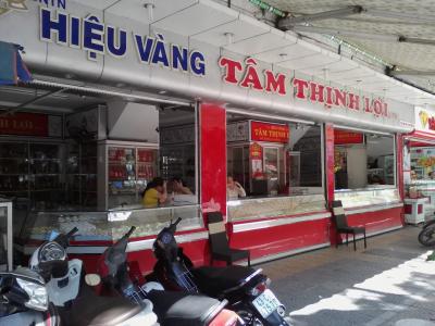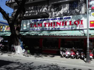 両替商も兼ねた金行(貴金属店)です。で、行ってびっくり。同じ?いやいや似たような名前の店が周りに何店もあるではありませんか。名前の最後に小さな文字を加えて同じじゃないもーんと言っているかのようです。この登録されている店は正式には「TAM THINH LOI MAI」最後の小さな「MAI」が見分けるポイントです。ダメ押しに住所は「121C Tran Phu」 ですのでお間違えなく。どうしてこんなにこだわるかというと他のパクリ店は両替レートがよくないからです。実際に「MAI」でのある日のレートが