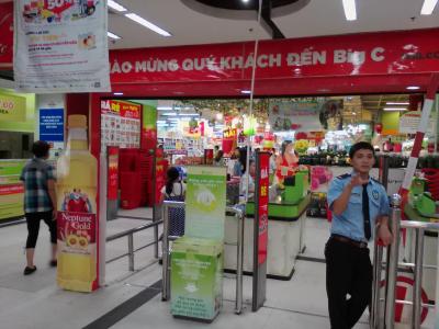 コン市場の斜め向かい、ビンチュンプラザの2,3階に入っています。2階は食品、3階は日用品です。日本へのばらまきみやげを買いに行きました。お目当てはインスタントラーメン。ダナンのBig Cは売場面積も広く商品も充実しています。ラーメンの種類もとても多いです。で、ベトナム滞在中に自分で食べリサーチ済みのお気に入りを購入。一つは「PHO BO xua & nay」(6200ドン)11個、もう一つは「YUMMI Bo Ham Hat Sen」(4800ドン)6個。いずれもエースコックです(もちろん現地生産ですが)。それにバラで4個、計21個118300ドン。590円くらいです。上記の2つはなかなかうまいのでぜひ買ってみて下さい。