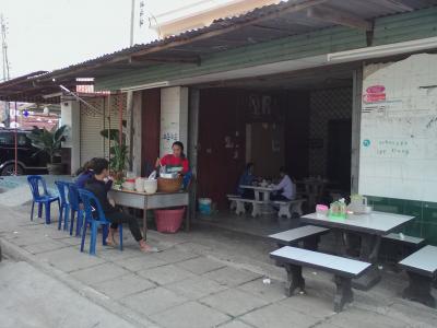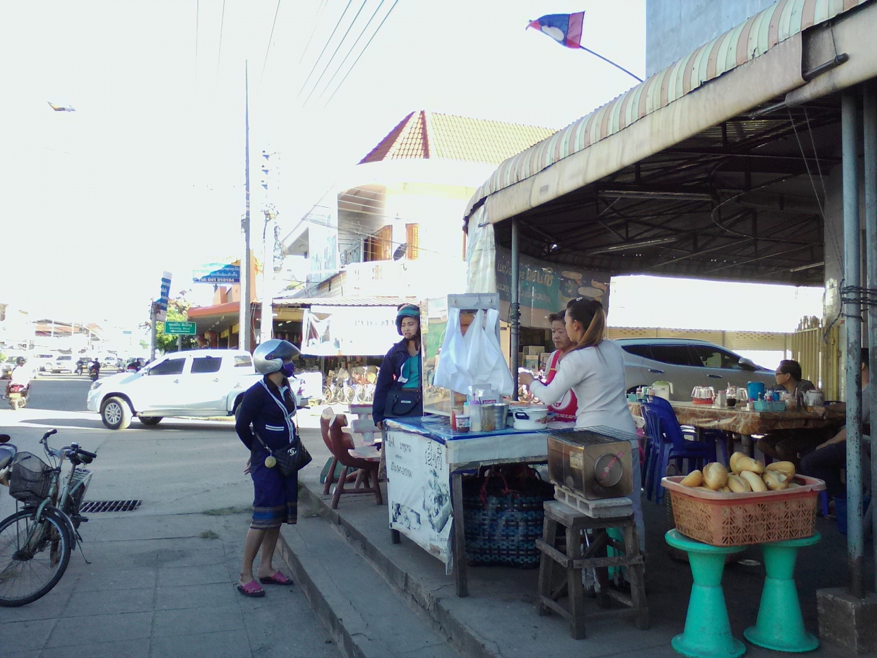 移転しました。と言っても同じ通り沿いの20mほど南側です。小屋状態から一応建物にグレードアップ、ですが雰囲気は昔のままです。お値段も5000kipのまま。うれしいじゃありませんか。味も抜群においしいです。サービスで出される冷たいジャスミンティーもとってもグッド。朝方は結構混んでいてなかなかの人気店のようです。営業時間は6:00から12:00頃まで。売り切れたら終了かもしれないので早めに行った方がいいと思います。