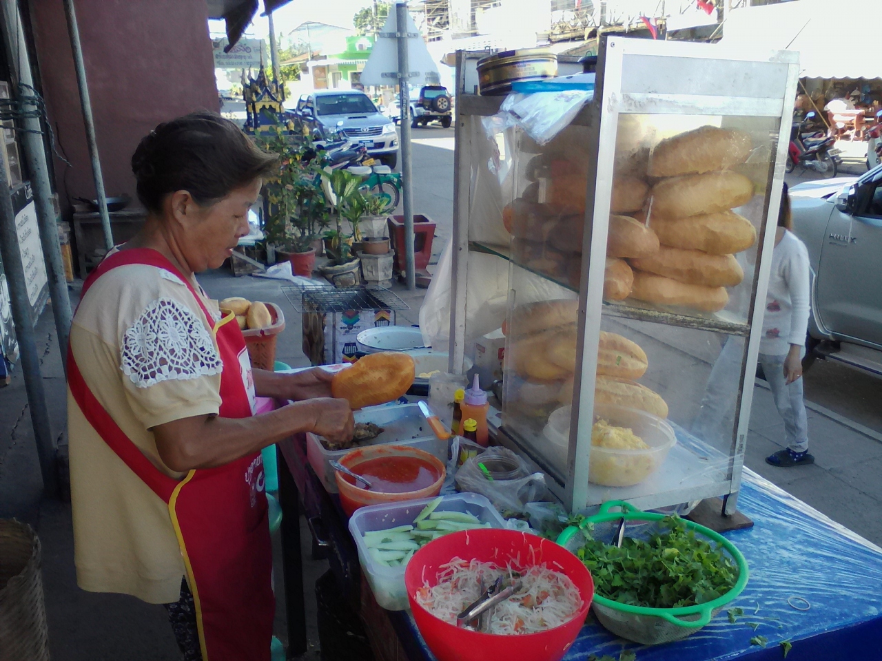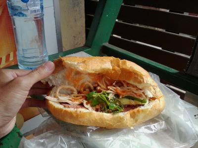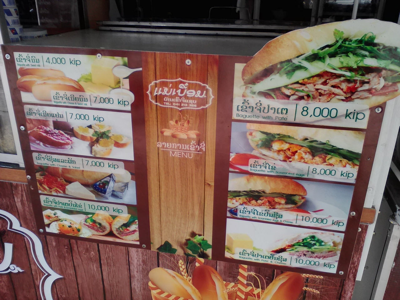 人気のサンドイッチ屋。店舗が少しきれいになり、一部商品、カオチー パテ(レギュラー) 、カオチー カイ(スクランブルエッグ) が7000kipから8000kipに値上げされました。人気が出ると値上げのパターンです。サワンナケートのサンドイッチの相場である7000kipであったからうまさの価値があると思うのですが、高くてうまいは当たり前。 その辺のところをよく考えてほしいです。サンドイッチはローカル仕様なのでチリソースも普通に入れられます。辛くて食べられないほどではありませんが辛さが苦手な人は事前に少なくしてと言った方がいいかもしれません。店の前にベンチがありその場でも食べられます。すぐ横に同じ家族がやっているジュース屋があるので助かります。ローカルジュース、コーラ共に5000kipです。