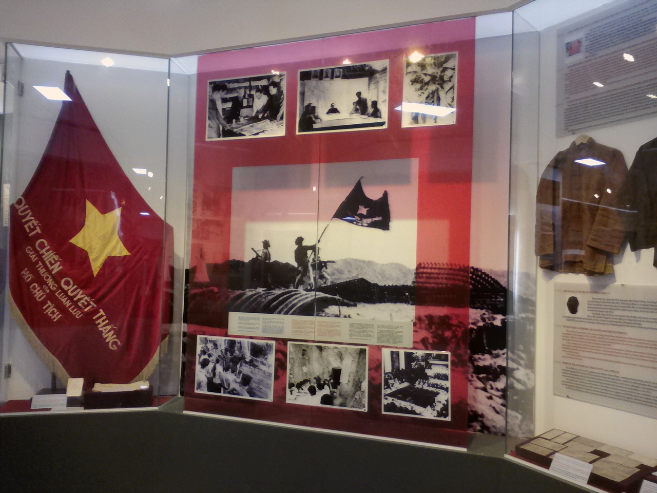 前回訪れた時は2階フロアが改装中だったので再び訪れてみました。1階には案内カウンターがあり、尋ねると入場料は無料とのこと。1階は写真パネルを使ったシンプルな展示でしたが2階は遺品やジオラマを使い革命の様子や解放戦線の戦いの様子などが紹介されています。英語の解説も付いています。フエはホーチミンが学び住んでおり縁の深い町でもあります。フエを訪れた際は立ち寄ってみるのもいいと思います。
