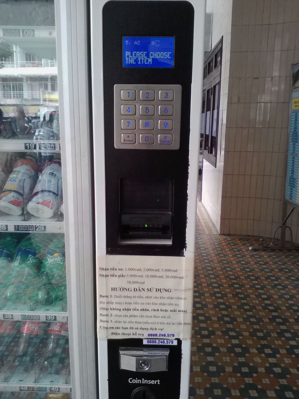 ダナン駅名物と言えば…超超超個人的にですがジュースの自販機です。自販機?と思われるでしょうが今までベトナムの町中で見かけたことがないからです(空港にはありそうな気もしますが…)。そう言えばそうだなと思われた方もいるのではないでしょうか。硬貨がほとんど流通していないからだと聞いたことがあります(実際は200,500,1000,2000,5000ドンが発行されています)。お釣りで札を出すのは大変なのかな。駅にある自販機は紙幣、硬貨共に使えます。さてお釣りはどっちで出てくるんでしょうか。レアな硬貨をゲットできるチャンスかもしれません。