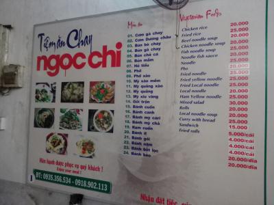 ベジタリアンではありませんがなんとなく行ってみました。壁にベトナム語と英語で書かれたわかりやすいメニューが貼り出されています。とりあえずメニューの一番上にあったChiken Rice(20000ドン)をたのんでみました。Chiken Riceと言ってももちろん鶏肉は使っていません。料理が運ばれてきて納得しました。おそらく野菜だと思いますが見た感じが茹でた鶏肉を裂いたように見えます。鶏肉の味はしませんが…。味も全体的に薄く、決して不味くはありませんがパンチに欠けもの足りませんでした。しかしとってもヘルシーだと思います。欧米人旅行者も食べに来ていました。