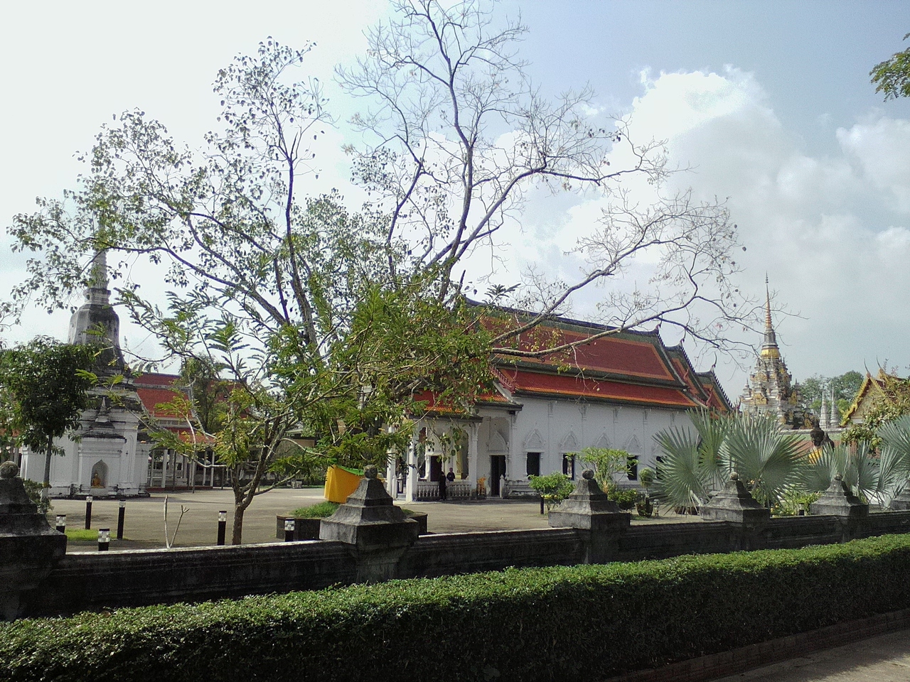 チャイヤーの町の西1kmほどにあります。道も一直線で分かり安く簡単に歩いて行けます。大きな寺で土産物屋もあり、西洋人の団体がバスで来ていました。それなりに有名なお寺のようですが訪れる人はそれほど多くはなさそうです。四角い三層の仏塔が建っており、周りの回廊にはぐるりと仏像が安置されていて見応えはあります。人が少ないせいか静かにのんびり見学でき、とてもいいところです。