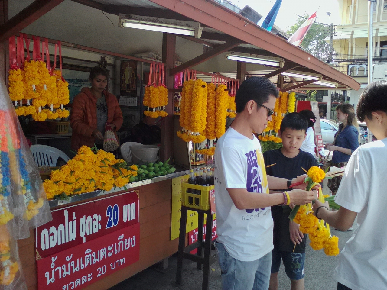 新市街と旧市街の真ん中、コラートの一番賑わう場所に建つ英雄像。英雄といっても女性です。その昔ラオス軍に攻め込まれた際、機転を利かせて敵を撃退するのに一役買い、町を救ったということです。毎日参拝客で賑わっています。その一角には“参拝セット”を売る店があります。生花、ロウソク、線香がひとまとめにされて20B。お参りの作法は簡単ですので周りの人を真似すればOKです。この像があるのはちょうど旧市街を囲む西側のお堀にあたり公園にもなっています。開放感がありとても気持ちのよい場所でもあり、コラートのマストスポットです。