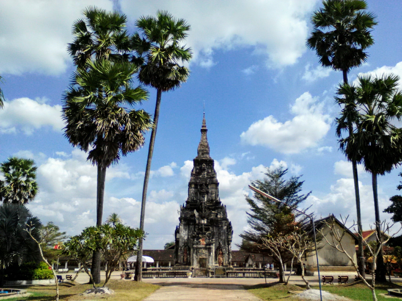 寺院の中にシブい仏塔が建っています。仏塔エリアに入るには入場料5000kipが必要です(ちなみにラオス人は2000kip)。それほど多くはありませんが地元の参拝客が来ていました。ただ仏塔自体は大したことはなく、ただ眺めるだけなら西側の広場側の塀が低いのでそこからでも十分見られます。広場には屋台が出ているので食事もできます。