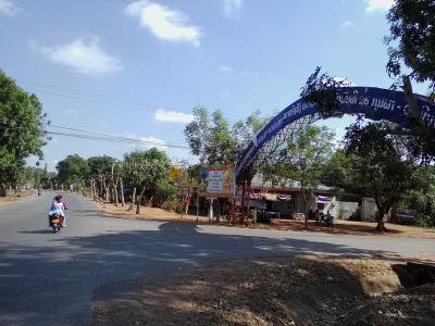 サワンナケート市街の北東15kmほどに位置しています。トゥクトゥクで行くのが一般的かもしれませんがレンタルバイクや自転車で行くのもおもしろいと思います。市内ではどちらも借りることができます。で、自転車を借りて(1日15000kip)行って見ました。道は簡単、ビエンチャンへと続く国道を北上、タイのムクダハンに向かう第2友好橋への交差点を過ぎ6kmほど進み右折です。交差点の右折側にある大きな青いアーチ状のゲートが目印です。小さな「INGHANG STUPA 3km」の看板もあります。