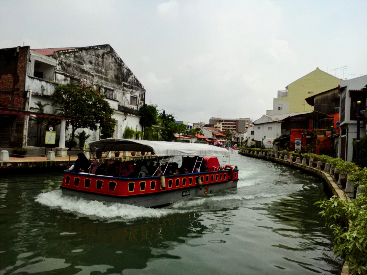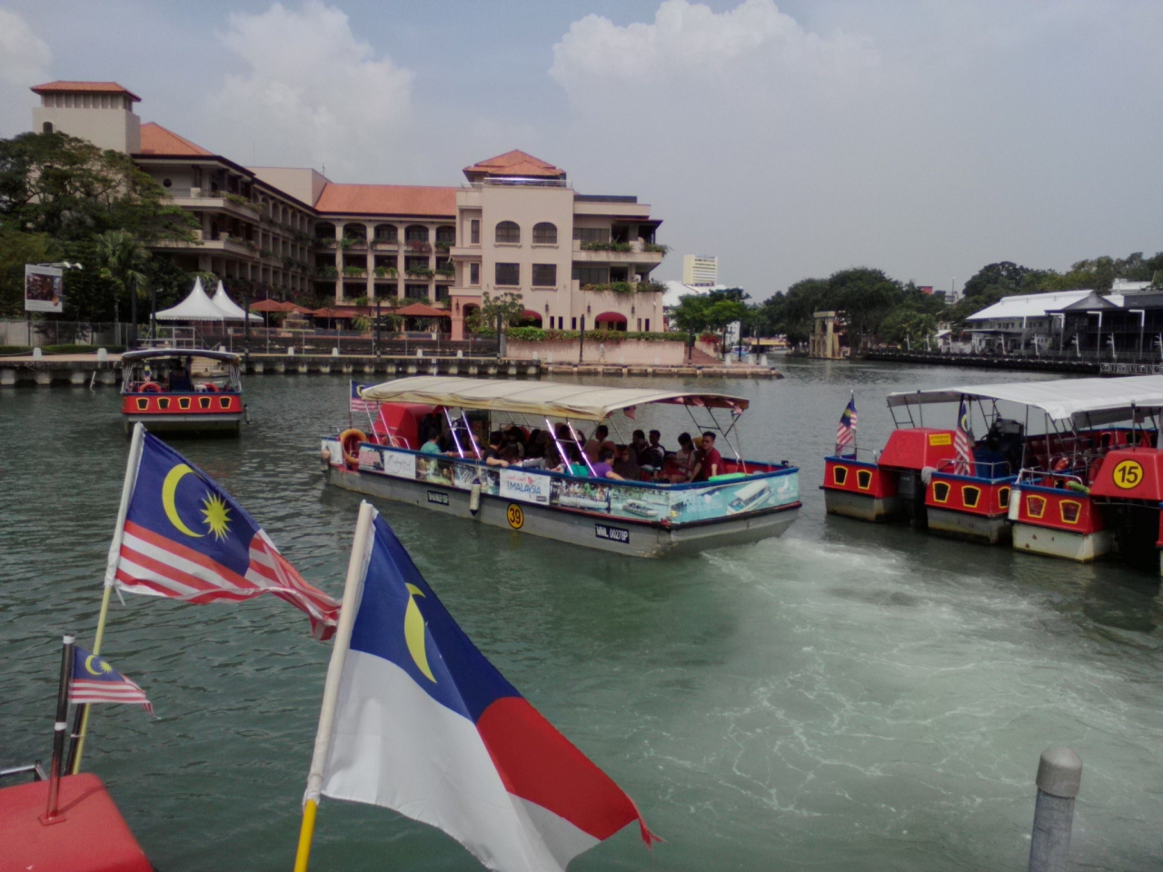 大きな木造船が目印の海の博物館の近くにマラッカ川リバークルーズの乗り場があります。1.5kmほど上流(直線距離)にあるスパイスガーデンまで景色を眺めながらボートクルーズが楽しめます。料金は往復で外国人大人の場合、月-木15.9RM、金-日21.2RM(祝日とスクールホリデーも含む)。片道も同じ料金。運行時間は毎日10:00-23:00、30毎に出発、所要往復で40分です。乗船前にカメラマンがいて希望すれば写真を撮ってくれます。下船時に出来上がった写真を買うこともできます。写真は40RM、マグネットにされたもの30RM。両方買うと50RMにまけてくれます。写真を撮られても買う買わないかは自由です。