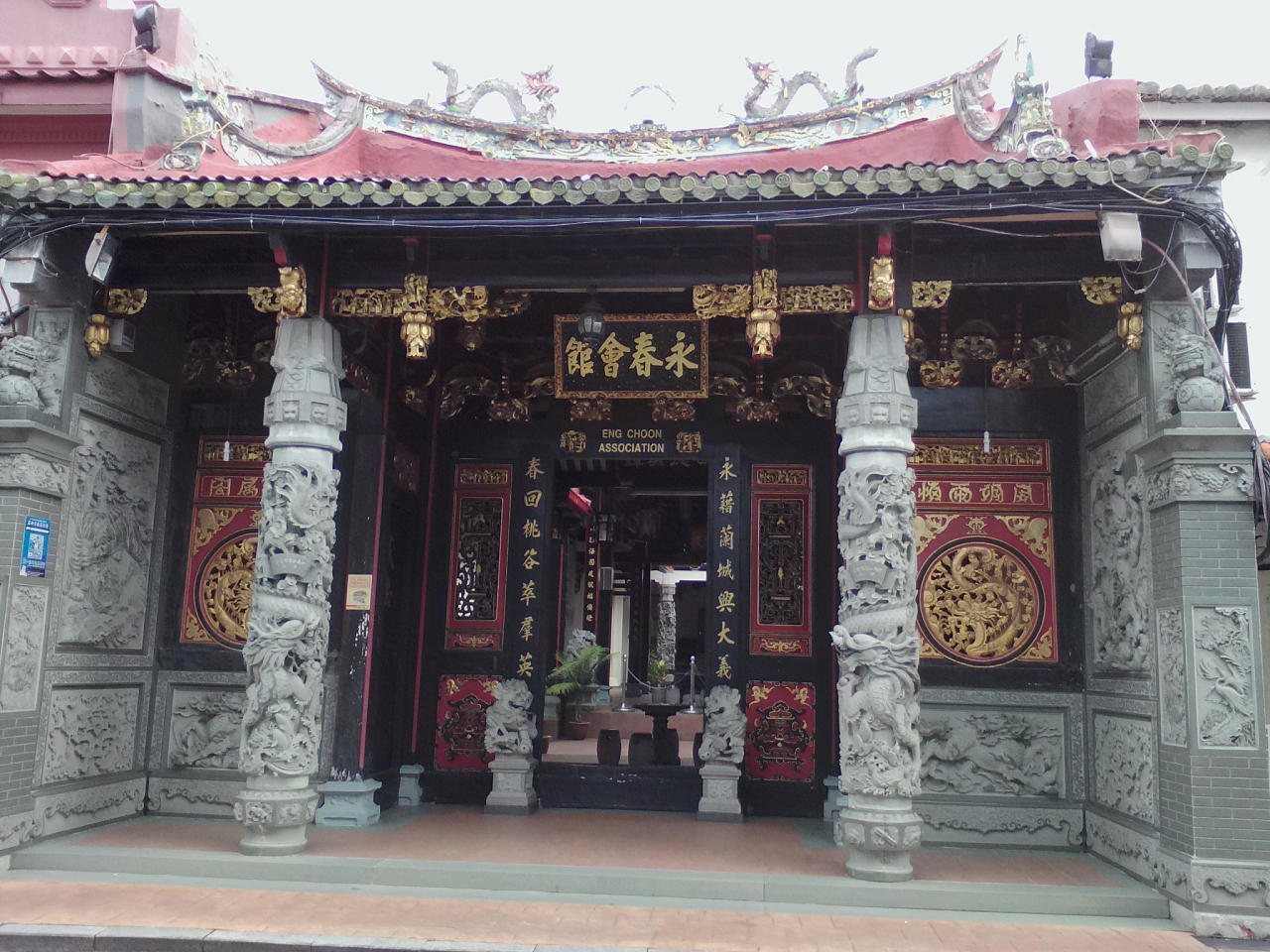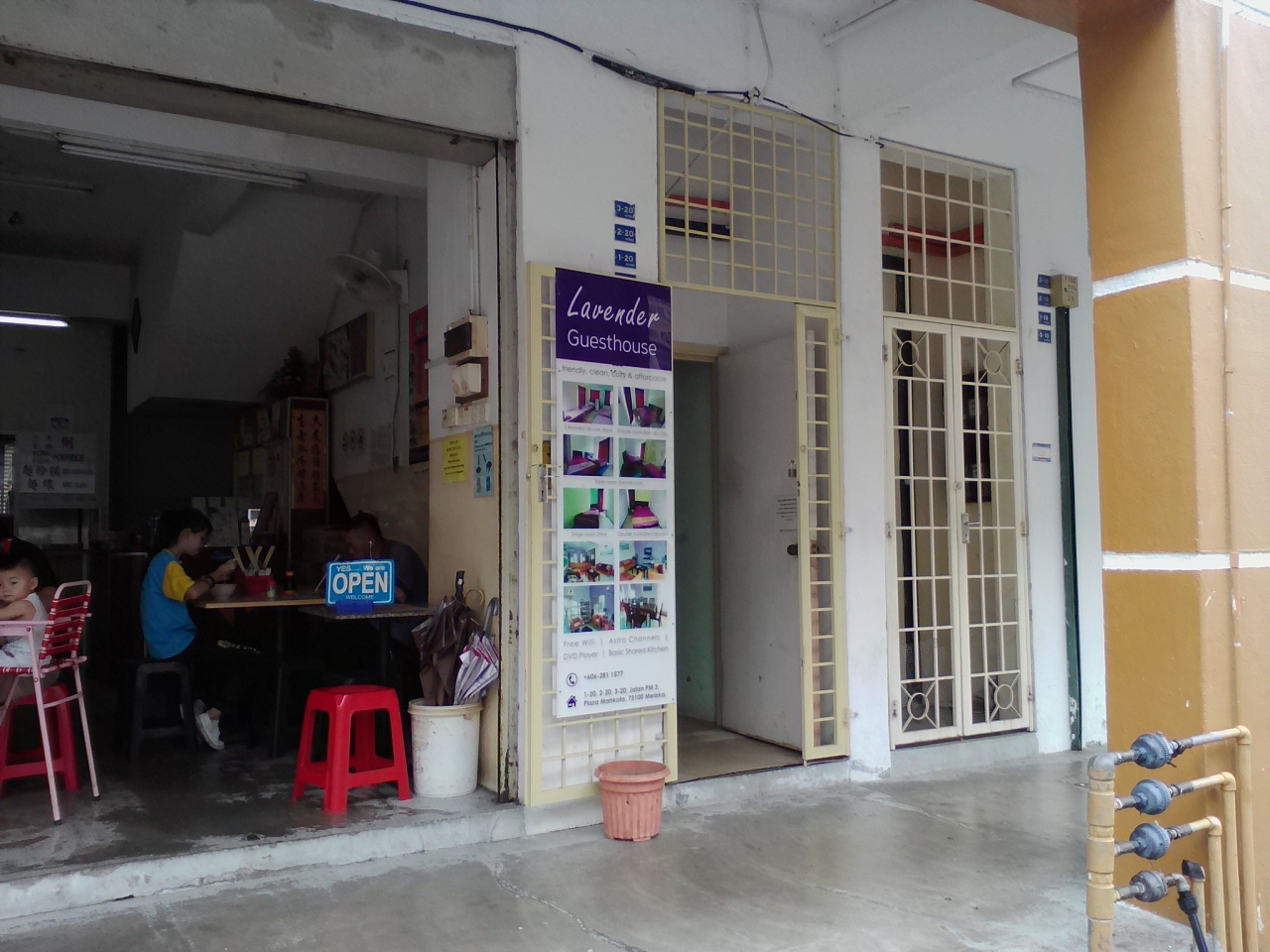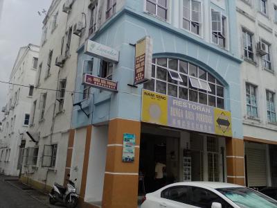長屋風の建物の2〜3階部分で1階は中華系のお粥屋になっています。