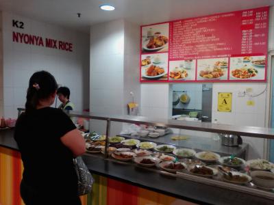 マコタ パレード3階あります。マレー料理はもちろん、タイ、ウェスタン、ご飯ものから麺類、スイーツまで種類も多いです。安いものなら5RMから食べられますが、一番奥のレストランではToday Specialとしてチキンライスが4RMでした。私は入口近くにある「NYONYA MIX RICE」でいわゆるぶっかけご飯をオーダー。ビーフカリーとナスの炒めものをご飯に乗っけてもらいました。料理を受け取る前に金額の書いた紙を渡されるのでキャッシャーに持っていき支払いを済ませます。そのレシートを料理と交換します。お味ですがビーフ、ナス共に冷めておりかなりいまいちでした。