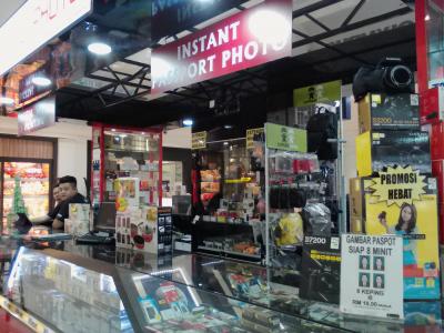 マコタパレード1階西出入口近くの「PAKARD PHOTO」というカメラ屋でパスポート用の写真が撮れます。4枚綴りで16RM、8分仕上げ。パスポート用は背景が青、ビザ用は白または黒でプラス7RMと書かれていましたが別にビザ用でも背景が青でも問題ないんじゃないかと思います。国によっては特に指定のない場合も多いと思うのでパスポート用でいけると思います。