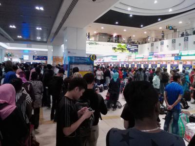 ハジャイ行きの国際夜行バスに乗るため土曜日の13:00頃、TBS(南部バスターミナル)に行きました。まだチケットを買っていなかったので念のため早めに。しかーし、バスターミナルは人で溢れておりチケットカウンターには超超長蛇の列が…。チケットカウンターにたどり着くのに1.5hかかりました。が、なんと何本かあるこの夜のハジャイ行きバスは全てフル。たまたまの可能性もありますが週末にその日のチケットを買って行こうという方は気をつけた方がいいです。平日の混み具合はわかりませんが事前の取得が賢明です。