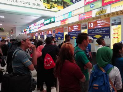 たまたまがどうかわかりませんが土曜の昼過ぎに行ったらとんでもない混雑ぶりでした。鉄道駅側から入ったらチケットカウンターに並ぶ列が半端ない。しかし注意が必要です。確かに列はできているのですがこれは入口近くのカウンターに並ぶ列です。私もこの列の最後尾に並んでしまいチケットを買うのに1.5時間もかかってしまいました。チケットカウンターは数多くあるので奥の方に行けば列が少なくまだましです。どのカウンターでも全てのバス会社のチケットが買えます。 と言っても混んでいるのは変わりないので1時間ほどはかかるかもしれませんが…。