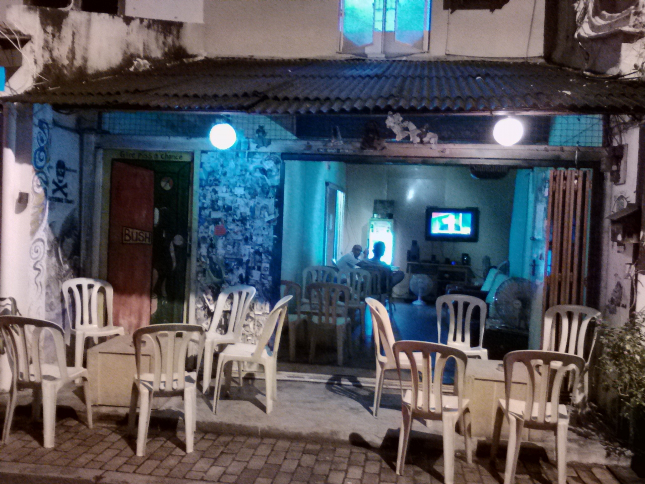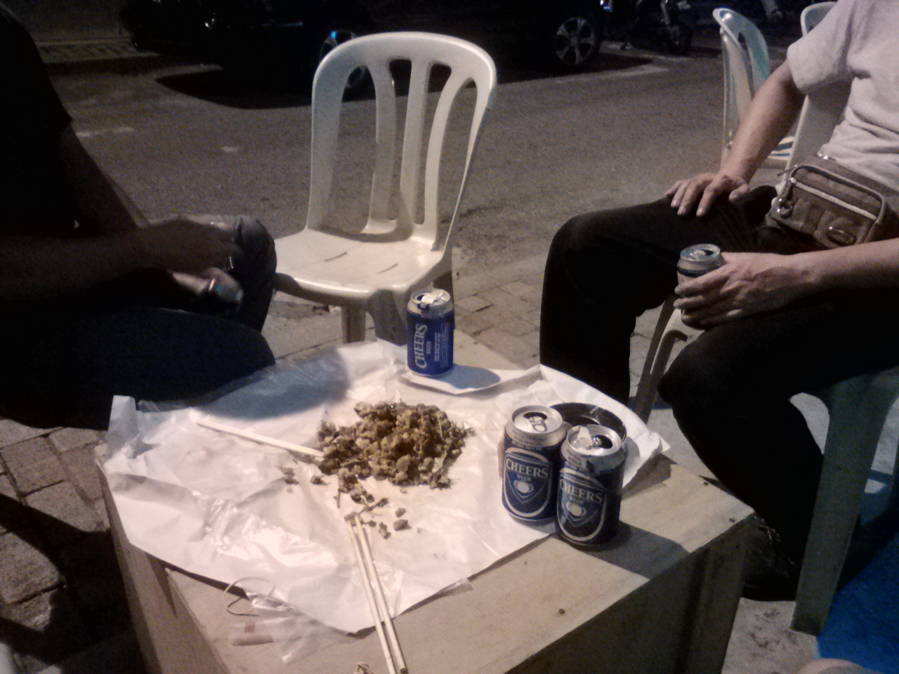 ジョンカーストリートの1本北隣りの通り。なのに観光客の喧騒はなく落ち着いた雰囲気です。中国寺院やヒンドゥー寺院、モスクが並んでおり多民族国家らしいところとも言えます。ゲストハウスやギャラリー、商店などもありますがちょっといい感じのビールが飲めるバーを発見しました。バーといってもカウンターの奥にシブいマスターがいるムーディーなお店ではありません。ただのおやじがいるローカル食堂のようなところです。場所はハーモニーストリート南端のオランウータン ハウスから50mほどのところ。店名は「Shantaram」、サンスクリット語で「平和を愛する人」と言う意味らしいですが看板は出ていません(店内にはある)。Tiger/Carlsberg(7RM)、Royal staut(6RM)、Chears(5RM)で飲めます。350ml缶です。開店は21:00からなのであしからす。通り沿いにイスとテーブルが出ています。