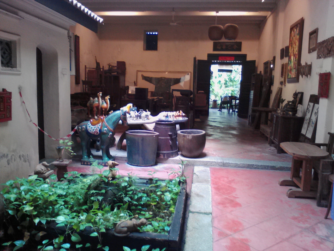 典型的なショップハウス造りのアンティークショップ。店内には家具や陶器、民具、生活用品、アクセサリー、昔のマラッカの写真や絵画などが展示、販売されています。内部は落ち着いた感じて子心地よい空間になっています。おそろしく値の張る重厚なテーブル(1万RM)からお手軽に買えるマグネット(8RM)までご予算に応じて?ありますが買う買わないは別にして“活きた”ショップハウスが無料で見学できるわけですから行かない手はありません。有料ミュージアムもいいですがこちらもぜひどうぞ。