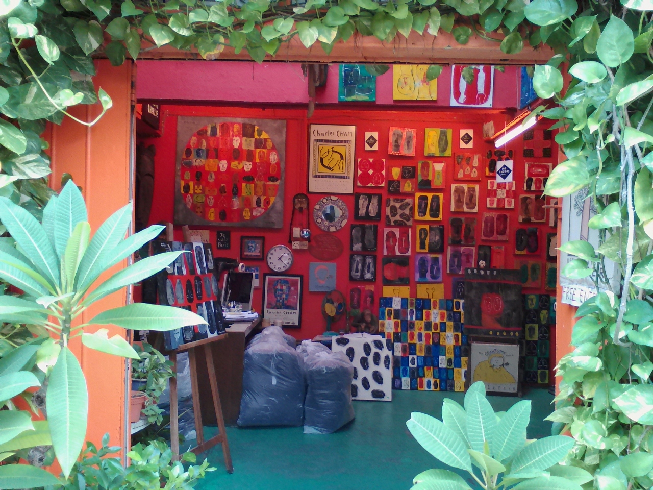 マラッカを拠点に活動する画家チャールズ・チャム氏のアトリエ&ショップ。壁に描かれた大きなオランウータンが目を引きます。店内にはある彼がデザインしたTシャツがずらり。やはりオランウータンをモチーフにしたものが多いです。どれも一律で39RM。数は少なかったですが20RMのワゴンセールもやっていました。実際に本人が店にいましたが壁に描かれたオランウータンに似ていてびっくり。少し話をしましたがとても穏やかで気さくな方でした。ここ本店以外にチャイナタウン内にもう2店舗あります。