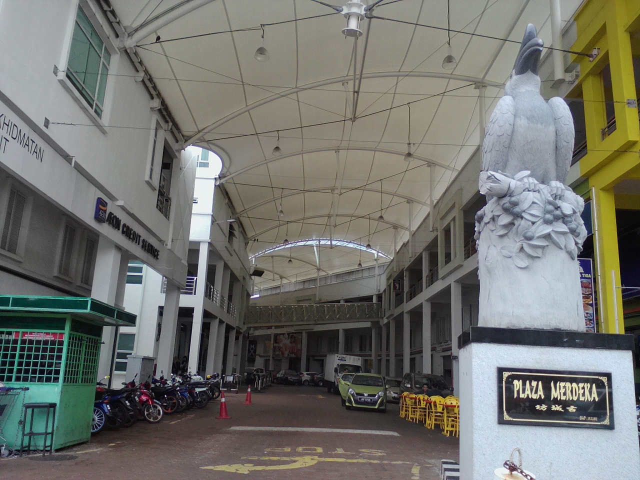 名前が変わったのでしょうか?「Persiaran Mahkota Walk」という看板が取り外されていました。新しい名前はPlaza Merdeka?はっきりしませんがこの通り自体はあります。正式の通りの名前は「Jalan Plaza Merdeka」。入口にある大きな鳥の石像が目印です。ちなみにですがこの鳥はクチバシが特徴的なマレーシアの国鳥であるオオサイ鳥です。