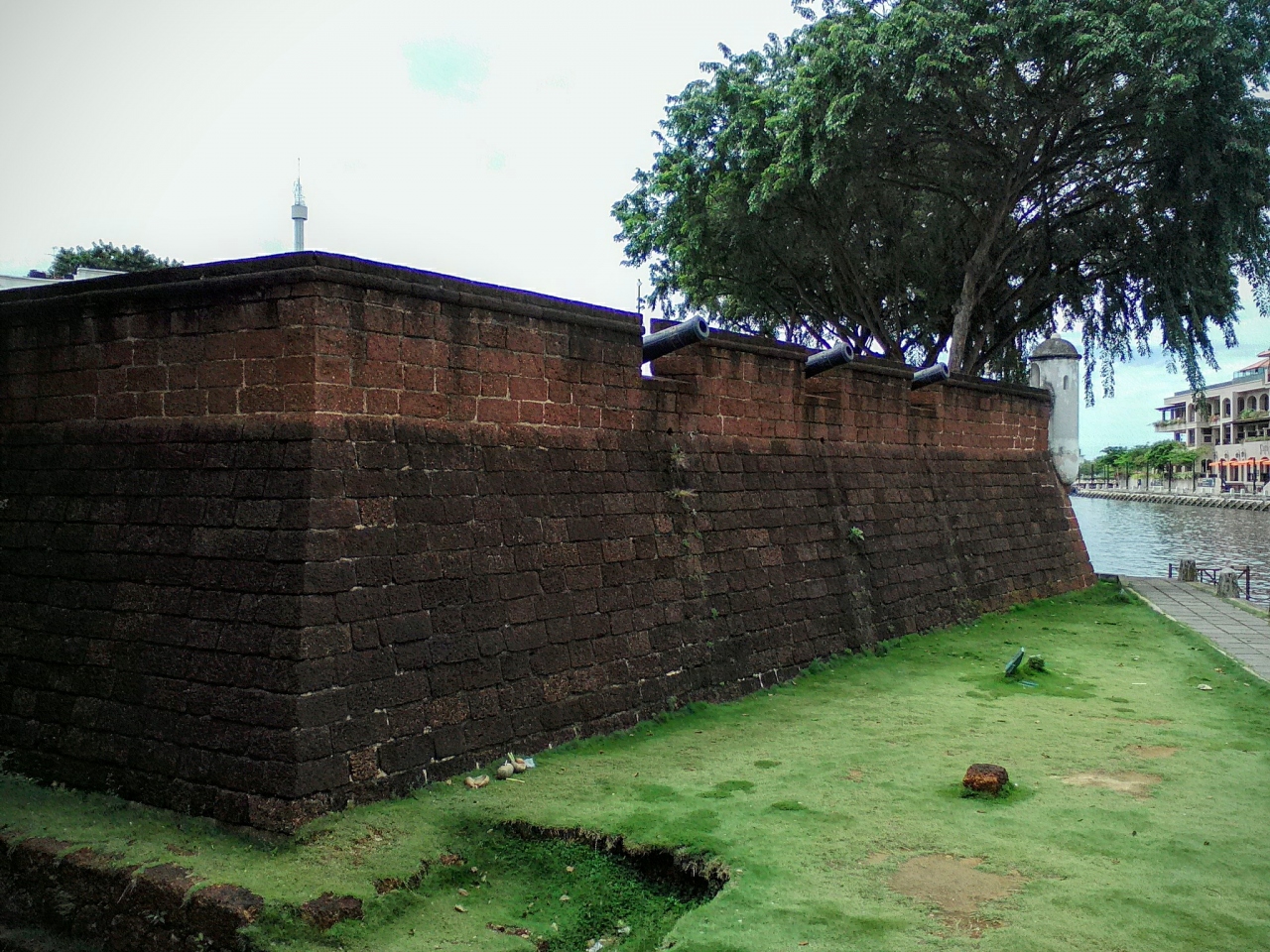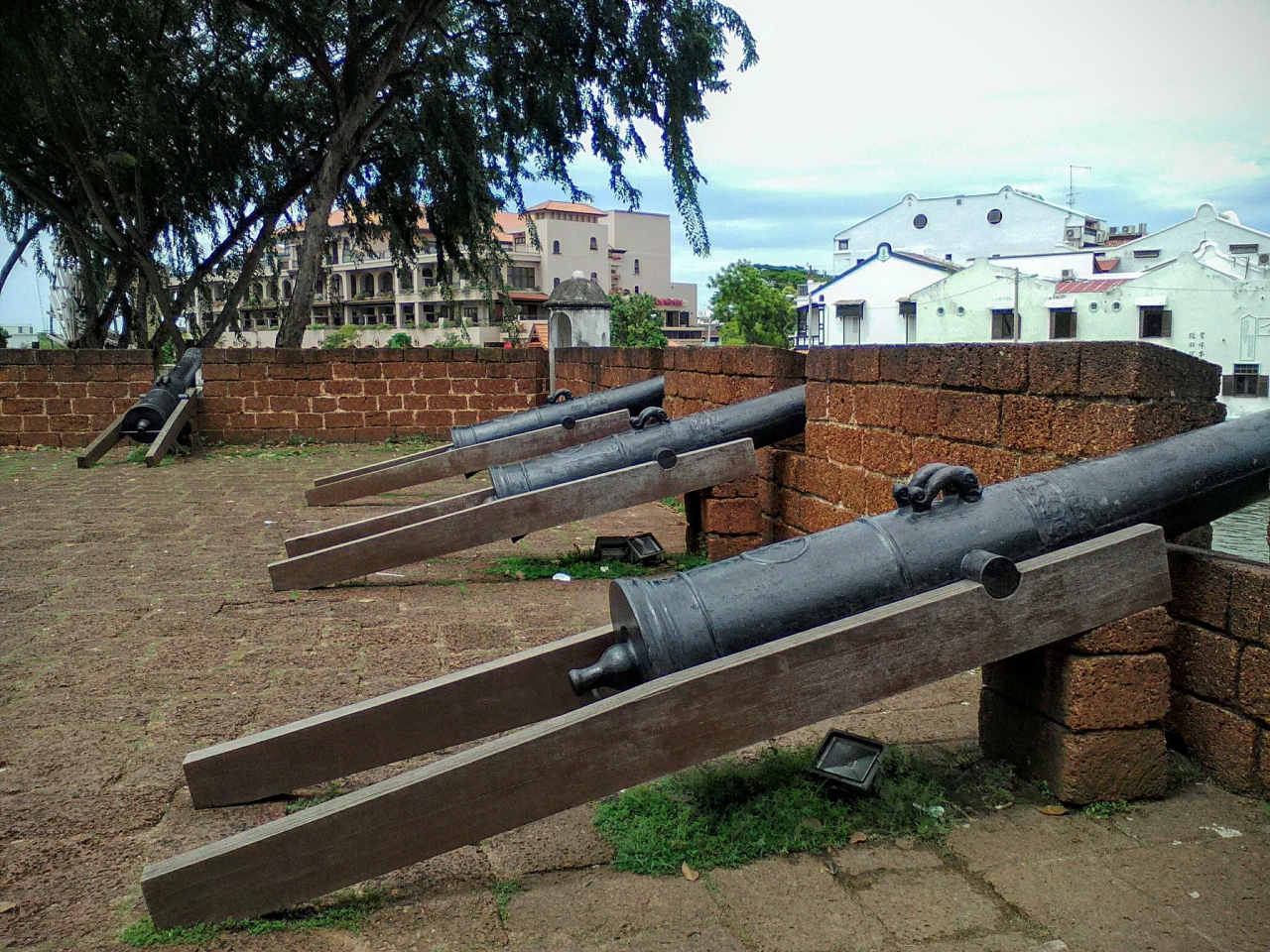 マラッカ川沿いにある砲台跡。階段があり上部に登ることもできます。大砲は本物のようで間近で見ることができ触ることもできます。そのデカさには驚かされます。土台のレンガが歴史を感じさせてくれ、要塞都市であったマラッカの一端が垣間見えます。