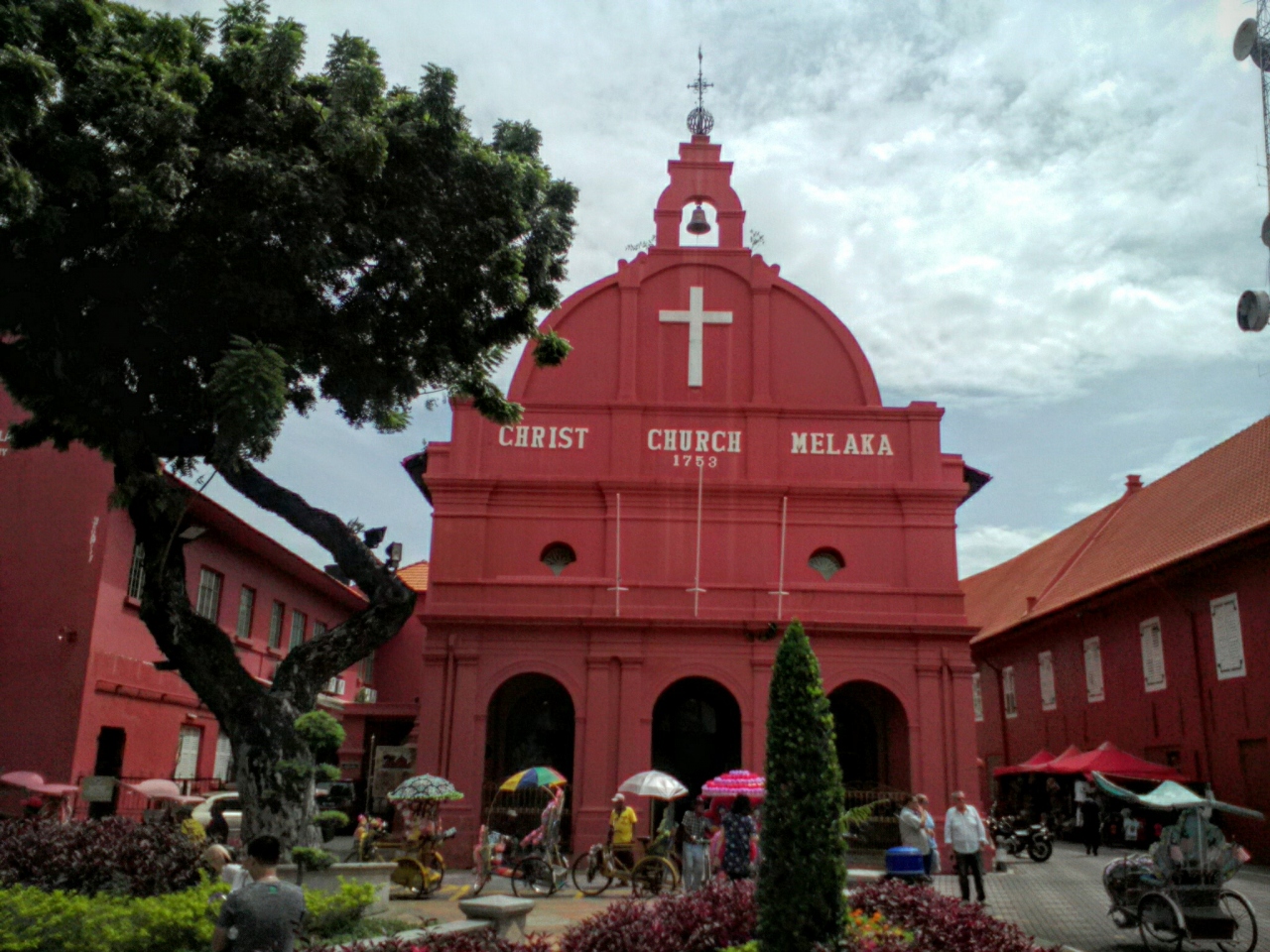 マラッカ観光の中心、オランダ広場にありながらさらにその代表的なのがこのムラカキリスト教会です。マラッカを訪れたことがなくても旅行好きの方なら写真などで一度は目にしたことがあるのではないでしょうか。赤く塗られたその姿は絵になるの一言です。と同時に現在も使われている“生きた”教会でもあります。日曜日にはミサが行われますがそれ以外の日でも内部を見学することができます(9:00-16:30)。それにしても教会の中にまで土産物屋を入れるなんて、ちょっとどうかなと思います。