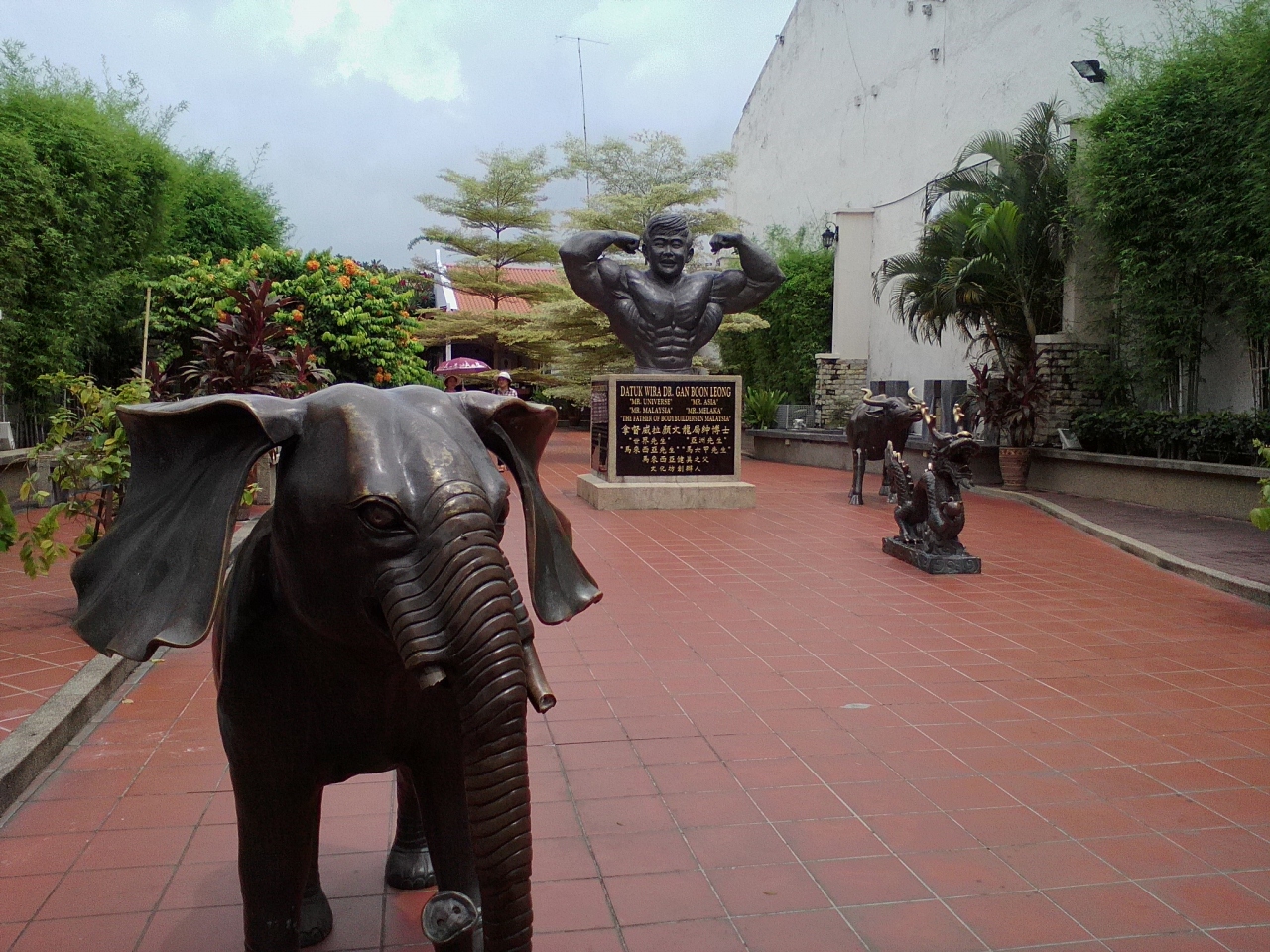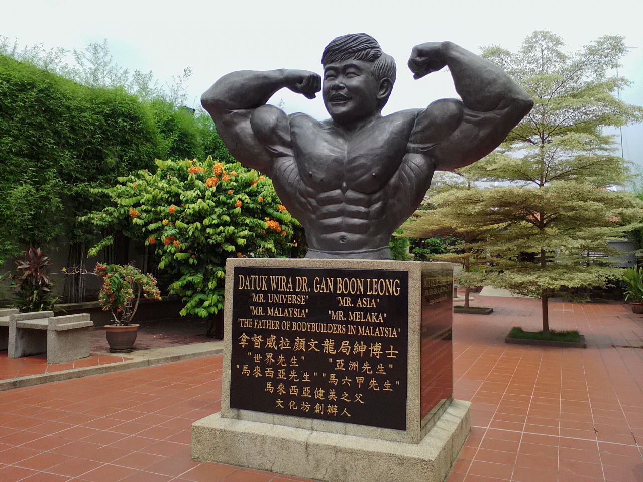 ジョンカーストリートの中ほどにある小さな公園。突然現れるムキムキの人物像に目を奪われます。これはふざけたオブジェなどではなく「ガン ブーン レオン」というマラッカ出身のレジェンド的なボディビルダーの像です。作りがマンガチックなのがなかなか斬新です。これもマラッカ名物の一つともいえるかも。お見逃しなく…。