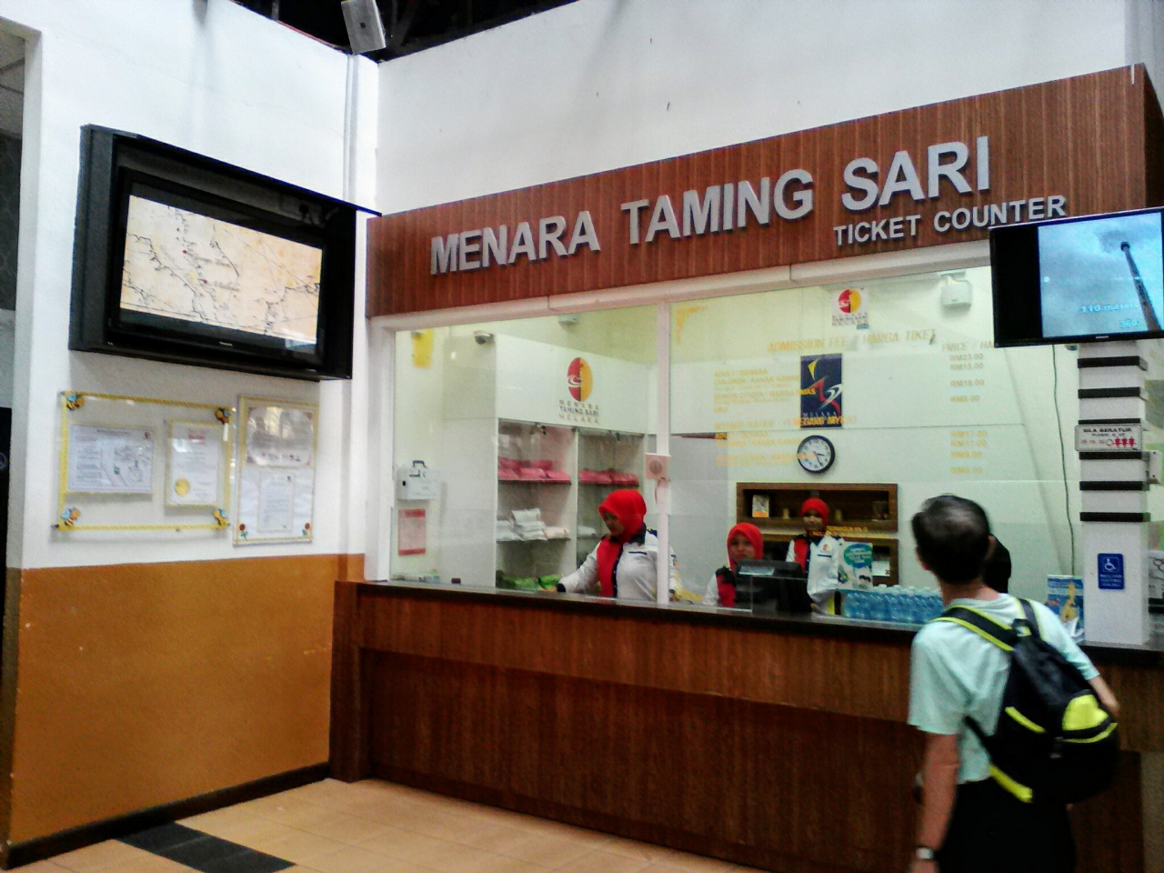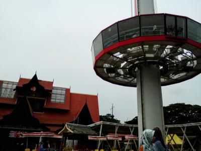 タワー自体の高さは110m。円形の展望座席では80mの高さからマラッカ市街のパノラマビューが楽しめます。チケットカウンターは横の建物内にあります。大人23RM、子供(2-12歳)15RM、シニア(55歳以上)18RMですがこれは外国人料金。ちなみにマレーシア人はそれぞれ17RM、11RM、9RMです。運転時間は毎日10:00-23:00、15分ごとに運転され所要約7分です。展望座席はゆっくりと回転するのでどこに座っても景色はかわりません。時間の割に料金はやや高めですが天気が良ければ乗る価値はあるかも。マラッカ海峡もよく見えると思います。