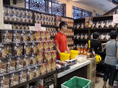 オランダ広場から橋を渡ったジョンカーストリートの入口に建つ大きな土産物屋。一等地にあるせいか週末は観光客でごった返しています。ほとんどがお菓子や食品のお土産でチョコやクッキー、まんじゅう系、ドライフルーツ、ジュース、飴、スルメなどなど。とにかく種類が多い。試食をさせてくれるのもうれしいところです。で、この店の売れ筋商品が「白珈琲」。いわゆるホワイトコーヒーです。各種タイプが揃っていますが、例えば8スティック入りボックスが10.8RM。多くの人が大量買いしています。