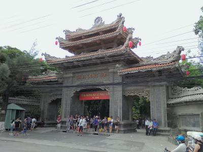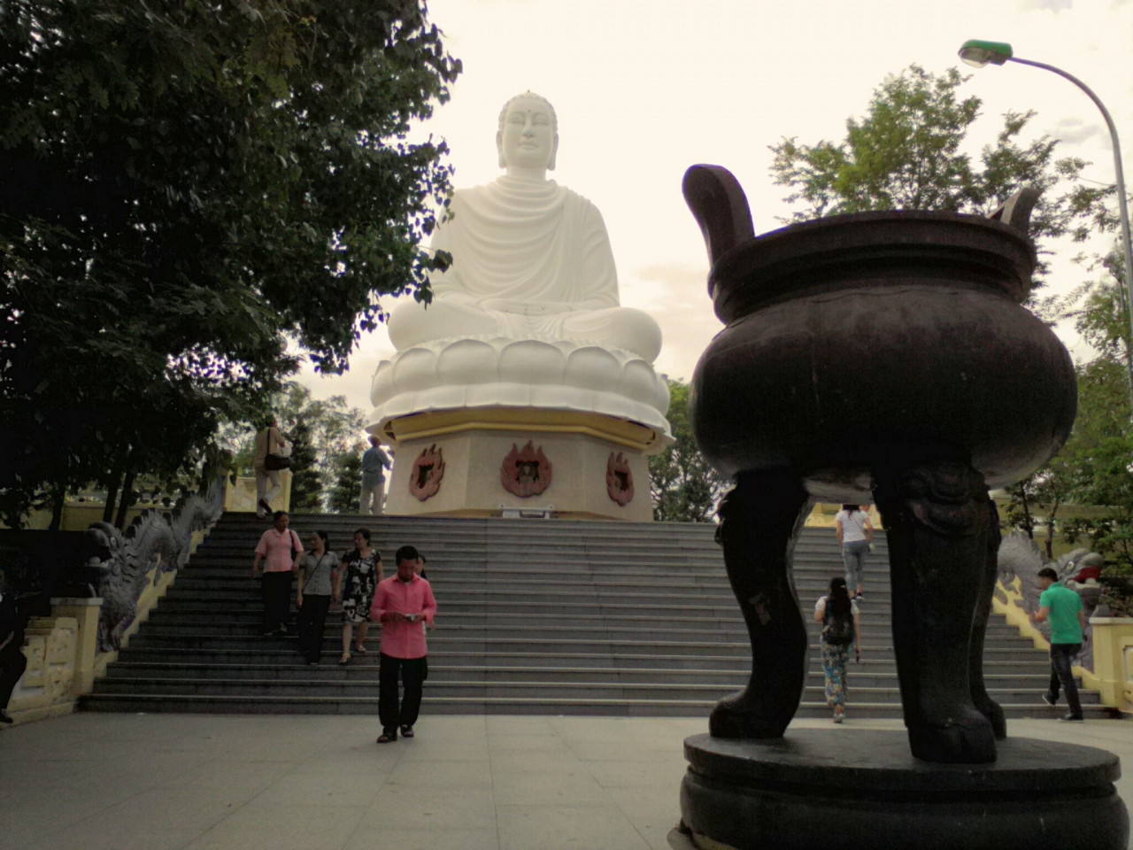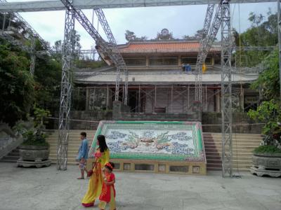 このお寺もツアー客の観光スポットに組み込まれているようで入り口付近はバス待ちの人を含めてかなりの人口密度です。なんと本殿は工事中と思ったら正面部分の改装だけで本堂には横側から入れました。内部は広く仏陀の座像が安置されており地元の方が熱心にお祈りしていました。本堂の先、階段を上がって行くと途中に涅槃像、山の上に大きな白い仏像があります。眺めもよくニャチャンの町が望めます。海もちらっと見えます。大した高さの山ではありませんがちゃんと道路がありバイクや車でも行けます。