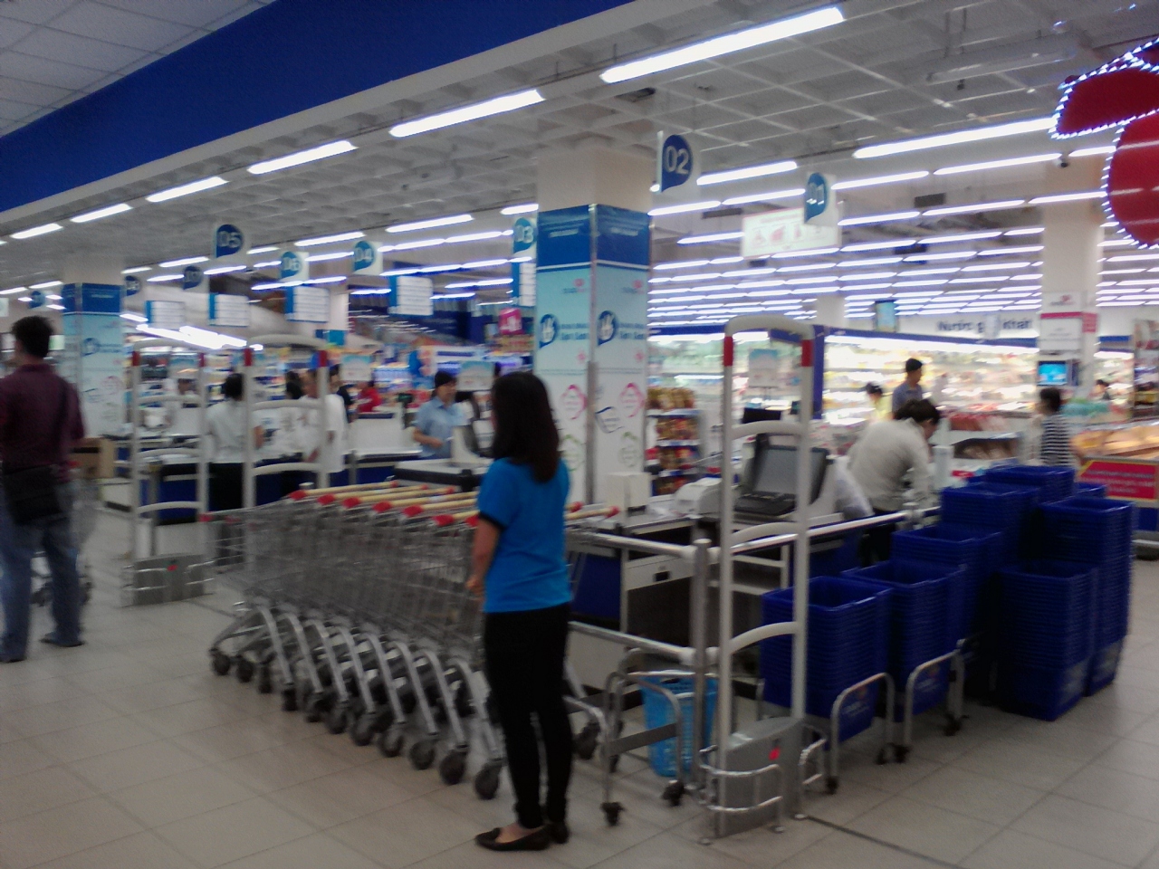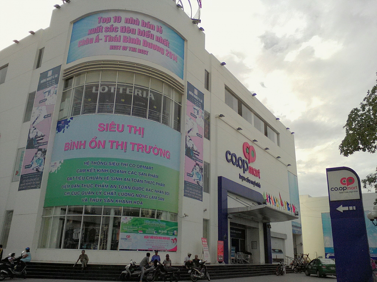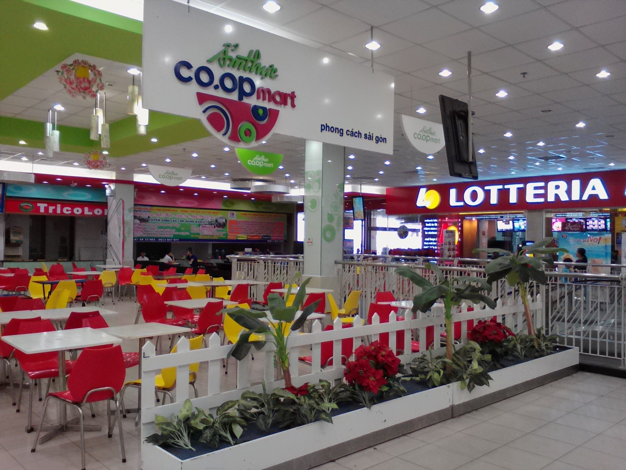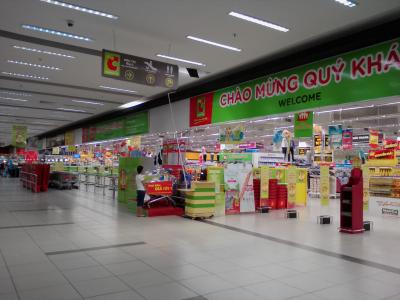 ベトナムではお馴染みのコープマートです。3階建てのショッピングモールのようなやや大きめの店舗。3階にはロッテリア、ジョリビーが入っておりフードコート、ゲームセンターがあります。スーパーマーケット部は1,2階、店内にも専用のスロープ式のエスカレーターがありレジを出ずに行き来できます。1階は食品売り場、手頃なサイズで買い物しやすいです。一般的な品揃えですがお惣菜、弁当売り場が充実しています。コムタムのような弁当が20000ドン、焼きそば類15000ドン、フライドライス(ちょっと量が少ない)は8100ドンとなかなかの安さです。333の缶ビールも10000ドンです。2階は衣類、靴、バッグ、コスメなどがあります。