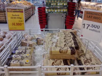 市街郊外に建てただけあって規模は大きいです。1階中央にはフードコートがあります。店も少なくあまり流行っていませんがコムタムやフライドライスなら20000ドン、ブンボーは25000ドンで食べられます。長いスロープ式のエスカレーターを上がるとスーパーマーケットがあります。食品、生活用品だけではなく家電や衣類売り場もあります。通路も広くかなりゆったりめの造り。一回りするだけで疲れるほどです。そのかわり安い!ざっと見た感じパンが安いです。特に食パン、巨大なレーズン入りのものがなんと14900ドン。残り少なかったので1個即買いしときました。しかし安いと言っても往復のバス代を考えると高くなってしまいます。どれだけ大量に物を買うかににもよりますが、やはりホテルエリアにいる旅行者には使い勝手はよくないと思います。- 旅行時期