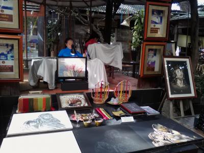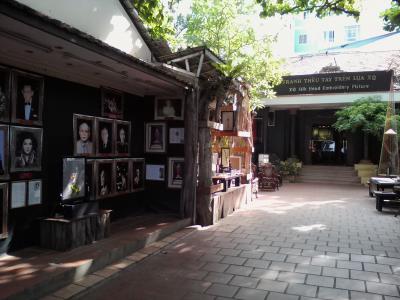 「XQ Arts and Crafts」。ベトナム絵刺繍を手掛けるショップ&ギャラリー&工房。広い敷地には中庭があり各所でアオザイを着た女性達が刺繍を施しています。来客者に作業の様子を見せるための演出でもあります。そしてギャラリー内はまさに美術館。大小様々な絵刺繍が展示されています。近寄って見ると確かに刺繍なのですが遠目に見るとまさに絵画のよう。息を飲む美しさです。いったいどれだけの時間がかかるのか気が遠くなります。販売もしています。小さなサイズの物で450$、中程度が2000$、大きな最高級品になると55000$もします。目ん玉飛び出る価格です。旅行者の方で実際に買う人は少ないと思いますが 見るだけでも充分価値はあります。ぜひため息をつきに行ってみて下さい。絵刺繍以外にもスカーフやバッグなどのあるショップもあります。