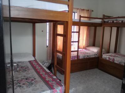 ドミに泊まりました。安部屋の宿命、最上階の5F(6階)ですが問題ありません。なんとエレベーターがあります。部屋はかなり狭く2段ベッドが3つ詰め込まれています。ベッドも小さいので大柄の人には辛いかもしれません。FANのみでバスルームは部屋の外にあり水シャワーのみです。しかしこのドミ最大のメリットは5Fがドミ部屋以外はルーフトップテラスになっていること。もちろん全宿泊者の共有スペースですが他の人はほとんどやって来ないので自分専用のように使えます。テーブルやイス、デッキチェア、ハンモックがあるのでのんびり過ごせます。Free WiFiは部屋の中では繋がりにくいですがテラスでなら問題なく繋がります。部屋はいまいちですがトータルで考えると悪くないドミだと思います。- 旅行時期