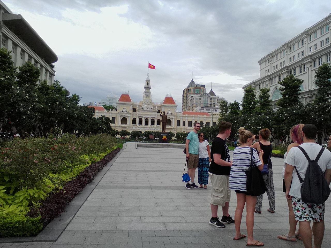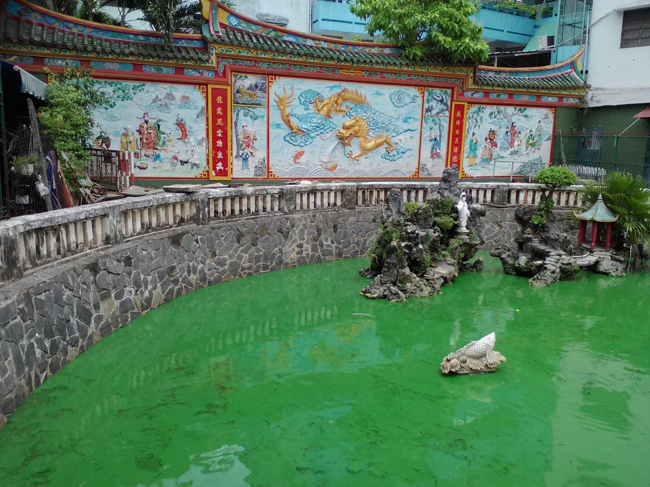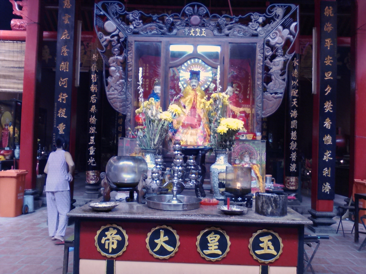 グエンチャイ通り、天后宮のサータイ市場の間にある華僑の仏教寺院。境内は石板が敷き詰められておりなんとも現代的。本堂内はとにかく派手、これでもかと言うくらいに飾り立てられています。一番奥には商売の神、関帝が祀られています。