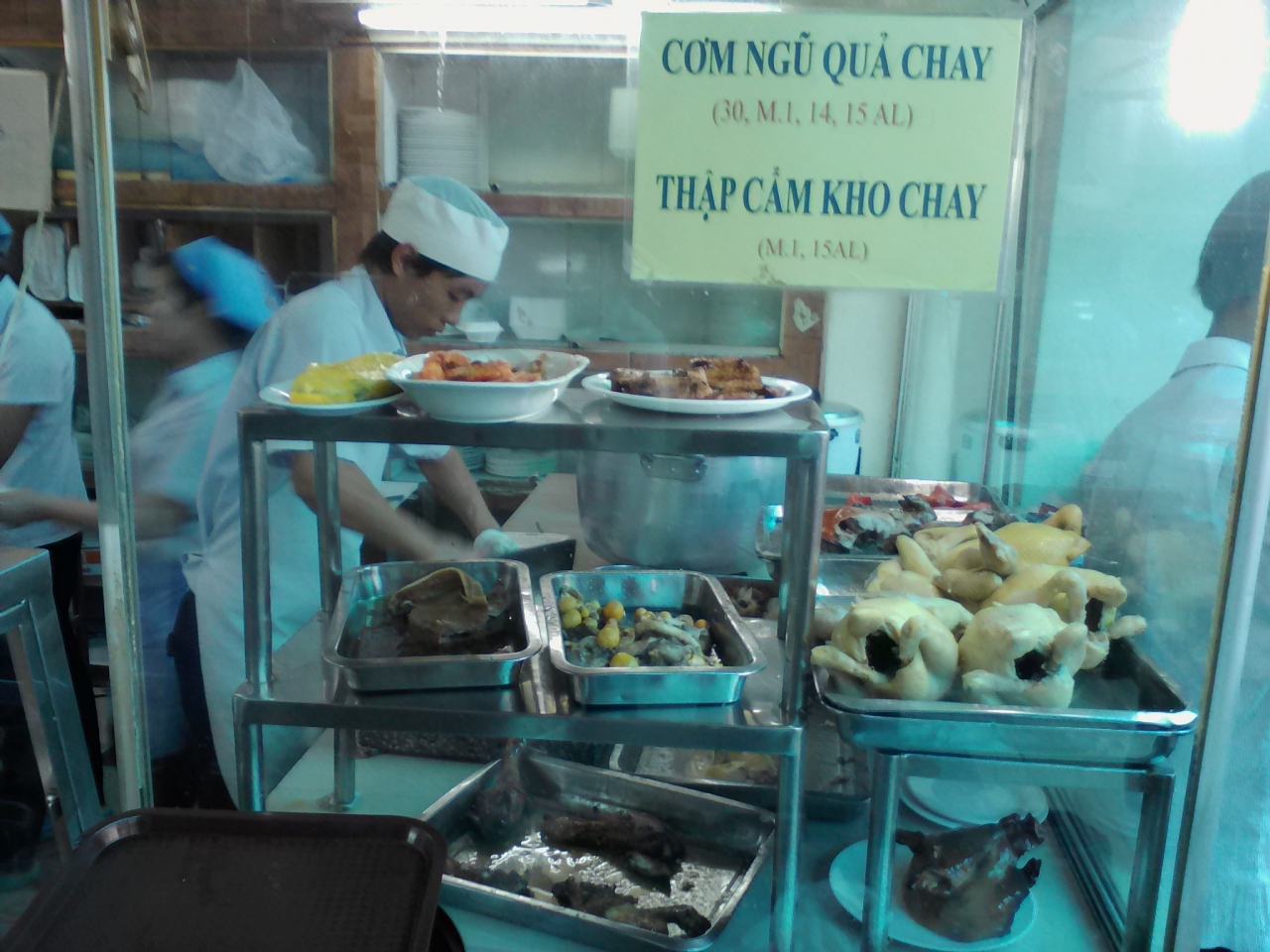 ガイドブックの地図にはチャウ バン リエム通りとグエン チャイ通りの角と記されていましたがグエン チャイ通りの30mほど西方に移転しました。おそらく繁盛しすぎて手狭になったためだと思います。角にも看板と共に建物だけは残っています。新しい店には客がいっぱいでした。かなりの人気店のようです。しかし看板メニューであるコム ガー(鶏飯)は55000ドン。白米(ダシで炊き込んでいない)に鶏肉のきゅうりが乗ったシンプルなもの。スープ付きとはいえなかなかいい値段です。味はもちろんおいしいんでしょうが店のネームバリューがかなり乗っかってる気がします。この店に来る人はこの店で食べたということに満足するんじゃないでしょうか。他の店なら半値で食べられます。
