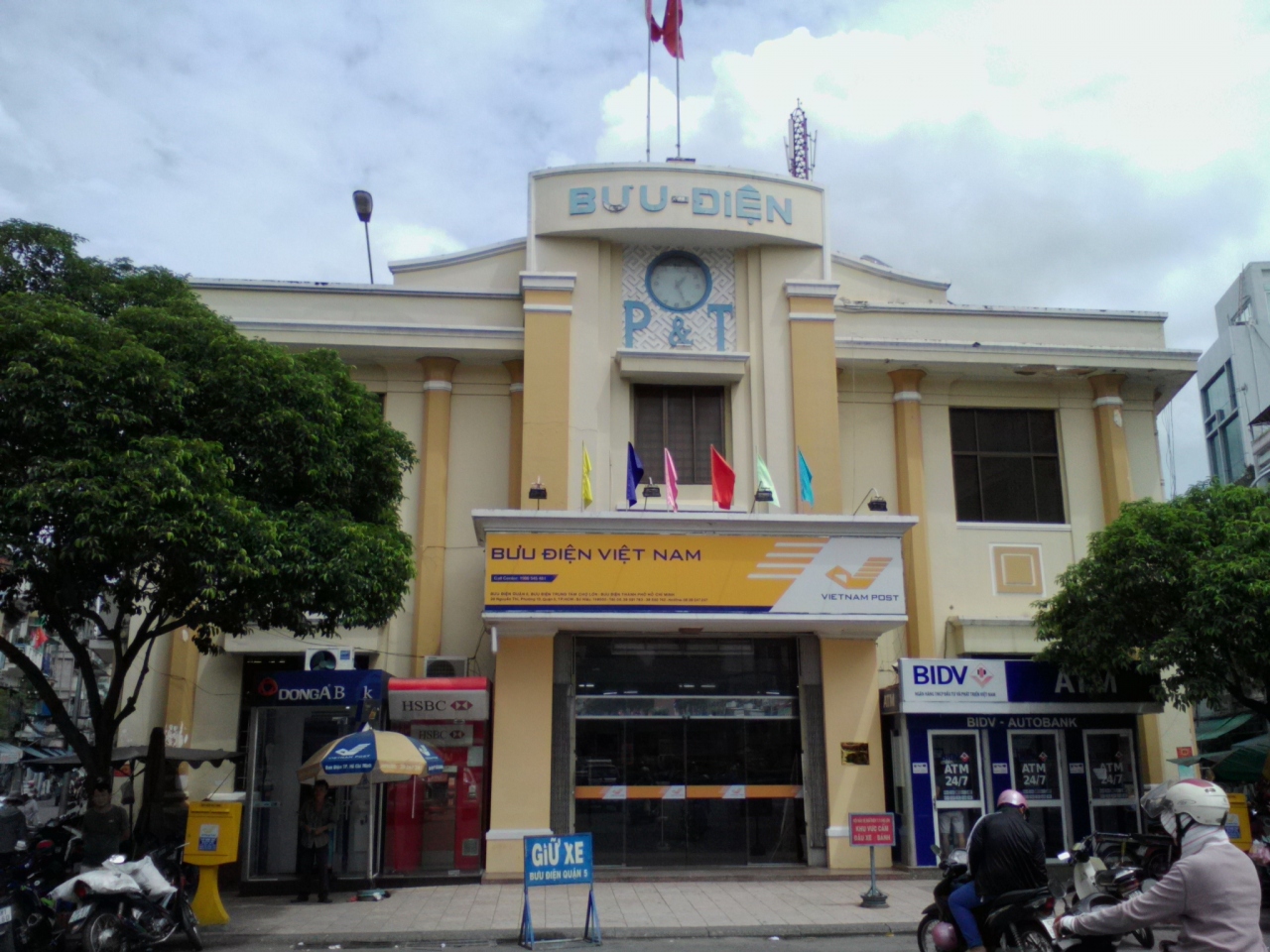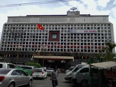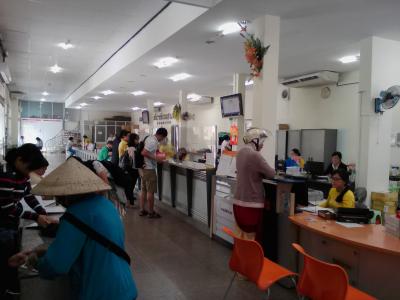 サイゴン中央郵便局を真似たんでしょうか、黄色を基調にした建物の色合いが同じです。それとも郵便局はこの色と決められてるのかも。規模は全然違いますが目を限りなく細めれば同じに見えないこともないかもしれません(ちょっと無理?)。中は味気ない普通の造りです。女性職員の制服が黄色いアオザイでグッドなのですが若干年齢層が高めなのが残念です。ちなみに日本までのポストカードの切手代は10500ドンです。サイゴン中央郵便局で聞いたら11000ドン。500ドンの差は何なんでしょうか?
