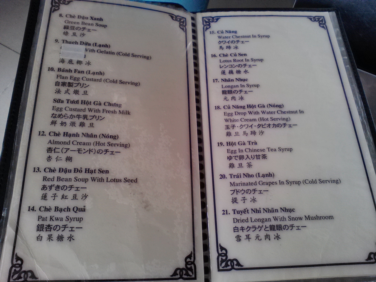 やってんだか、やってないんだかよく分からない寂れたお店。やる気がまったくありません。日本語のメニューはありますが値段表示なし。ベトナム語で書かれたものにはちゃんと値段が書いてあります。一手間かければいいだけなのに何か別の意図でもあるんでしょうか。メニューを見てどういった物が尋ねているのに面倒くさがってまともに答えてくれません。こっちが面倒くさくなり何かアホらしくなったので食べるのはやめました。感じ悪いです。