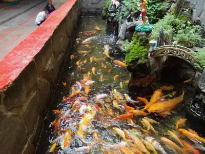 隠れスポットを一つ、本堂右寄りの方に鯉が飼われておりその密集度合いはなかなかのものです。必見です。また、寺院の道を挟んだ向いにも池があり奥の壁に書かれた絵もすばらしいです。池の色とのコントラストもなかなかです。- 旅行時期