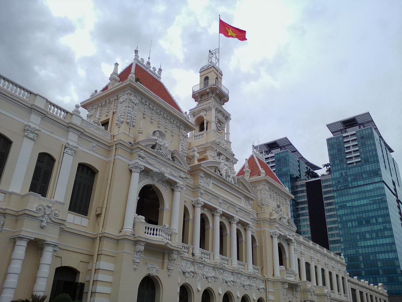 ホーチミン市人民委員会。ホーチミン市の立法、行政を行う組織。その建物は庁舎、要は市役所です。内部、敷地内は立入禁止、見学不可です。しかし絶好の見学スポットがあります。真正面のグエンフエ通りにある広場からよく見えます。ホーチミンの銅像越しに見るそれはとても絵になる構図です。庁舎の撮影は禁止のようですがここからならとがめられることはないと思います。