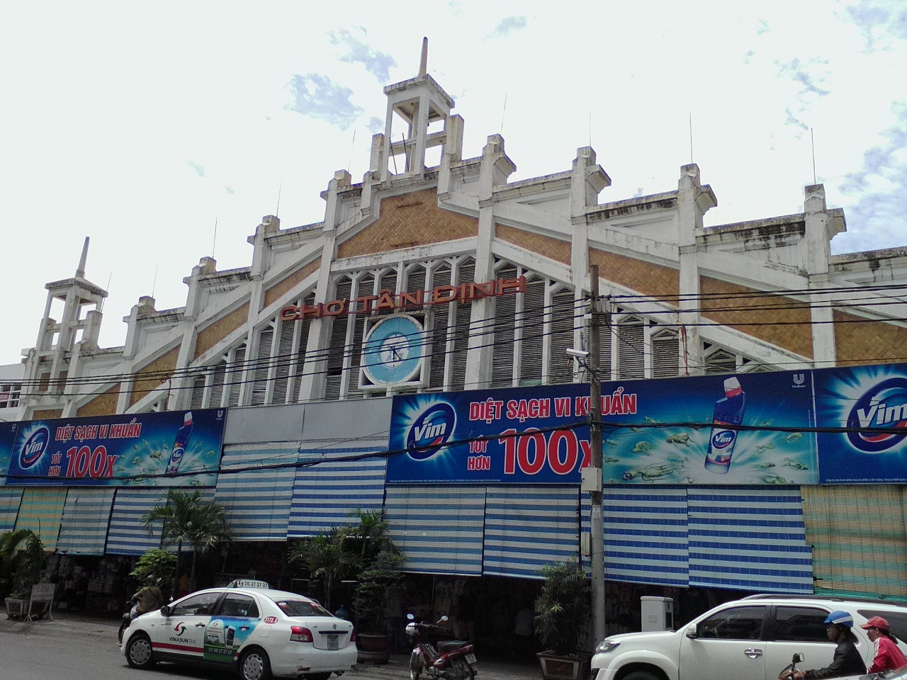 正面入口から入るとアオザイ用でしょうか、これでもかと言わんばかりの生地屋の列。少し構えてしまいますがあのベンタイン市場の様には声をかけてこないので安心して下さい。生地屋を過ぎると食品、雑貨の店が並びます。建物の外に出たところに肉屋、そして路上の露店市場では野菜などが売られています。市場自体はあまり特徴はなくわざわざ訪れる価値は低いと思いますがピンク色の「タンディン教会」から目の前のハイバーチュン通りを西に100mほどなので教会とセットで訪れてみてはどうでしょうか。