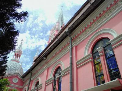 ピンクの教会。メルヘンの世界ではありがちですが実際に目の前にするとなかなかエグいです。周囲との調和は全くなし、完全に浮いています。マス(ミサ)の時間ではなかったので扉は閉じられ中には入れませんでしたが窓から覗いて見たら中の壁もピンクでした。一度は見に行った方がいいと思います。