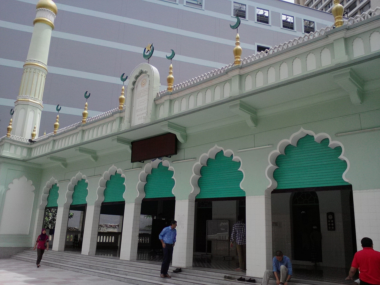 大都市にあるセントラルモスクとしてはあまり大きくはありません。入口を入ったところにいた人(バイク駐車場の係員)に一言断って見学させてもらいました。Tシャツとひざが隠れるくらいのハーフパンツでしたが一応OK(その係員がどれだけ権限がある人かわかりませんが…)。特に女性は服装に気を付けた方がいいと思います。敷地内には入りましたがさすがに礼拝堂の中は入場禁止だと思います。
