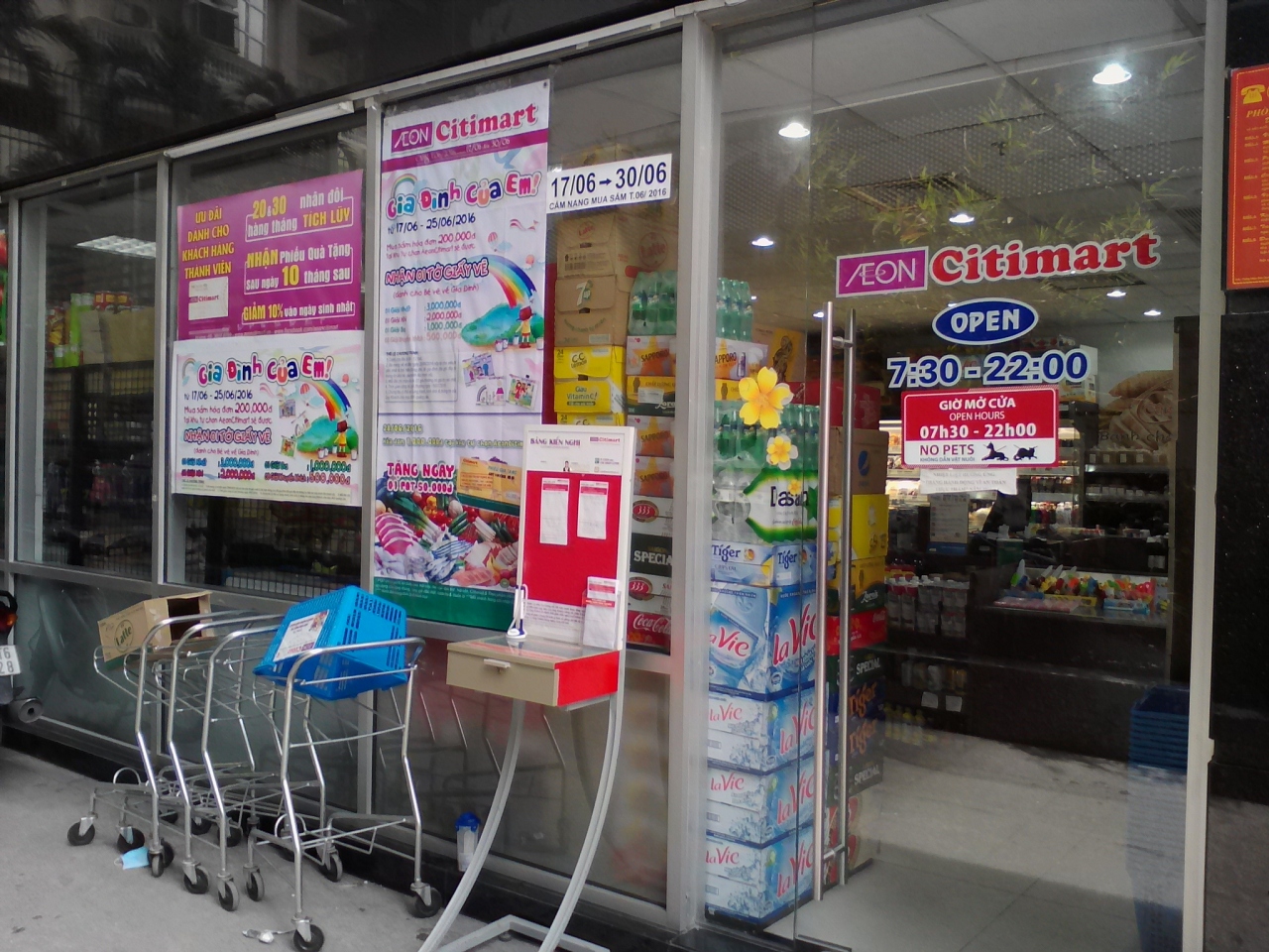 日本人が多く住んでいるというレタントン通りのランカスタービルの1階にあります。イオンモールが中心部からはかなり離れているのでちょっとした買い物用にということでこの場所に作られたのではないでしょうか。なのでコンビニとスーパーの間のようなサイズと品揃えです。特徴としてはやはりイオンですからトップバリュ製品があります。しかし種類が少なーい。もっと“モール”の方から持ってくればいいのにと思うのですが…。ラーメン(各種)1個19900ドンもしますが日本での値段とそう変わらない、努力してるほうでしょうか。他にはおにぎり15900ドン、しゃけ弁もどき43000ドン。現地在住の日本人からしたらうれしい値段だと思います。
