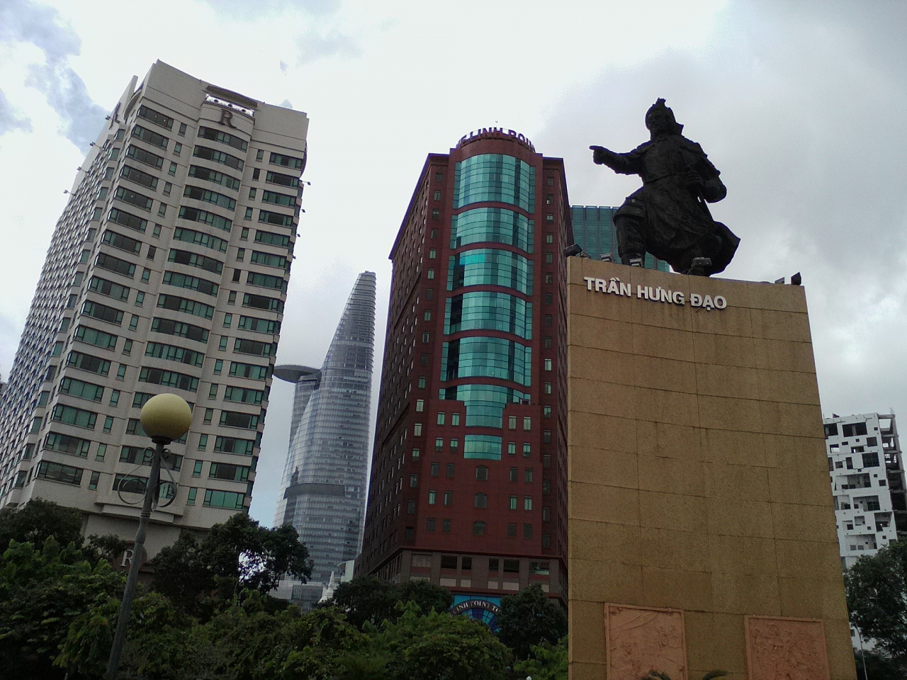 メリン広場、サイゴン川に面して立つ英雄の像。チャン フン ダオは中国、元の襲来を三度にわたり防いだ武将。現在でもベトナムでは英雄扱いされホーチミンのみならず全国各都市で目抜き通りの名前に使われたりしています。よく見ると今にも刀を抜きそうな姿をしている勇壮な銅像ですが見学に来る旅行者はほぼ皆無。川沿いで気持ちのいい場所であるしなかなかの穴場スポットだと思います。