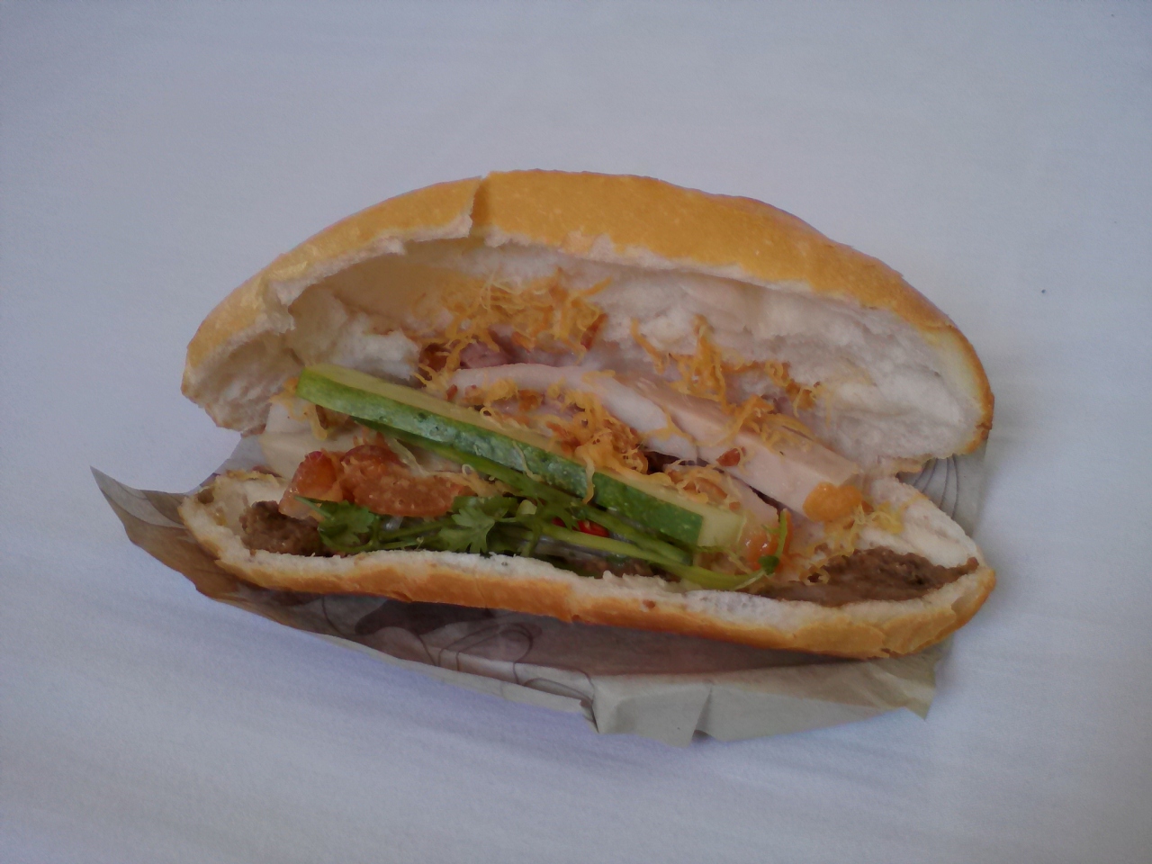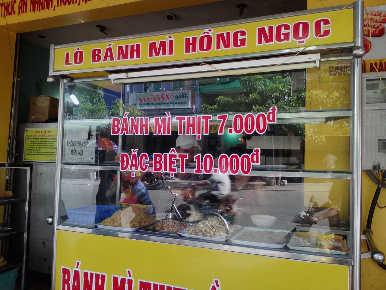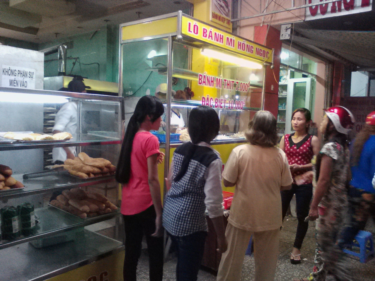 行列のできるパン屋。特に自家製バケットを使ったバインミー(サンドイッチ)が人気です。他の店や屋台では普通10000ドンしますがここのは1コ7000ドン。バケットはやや小ぶりですがしっかりとハムや肉、きゅうり、パクチーなどが入っていて味付けもよくおいしいです。朝食にはぴったりのサイズです。10000ドンで具が大盛りになります。