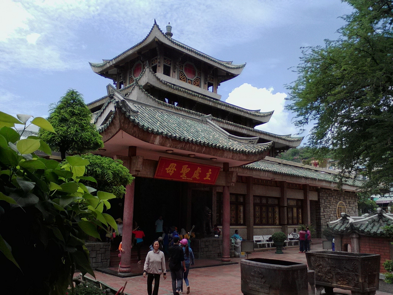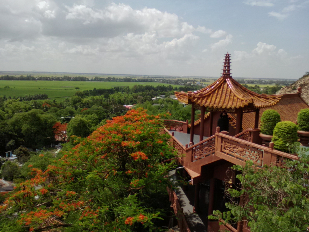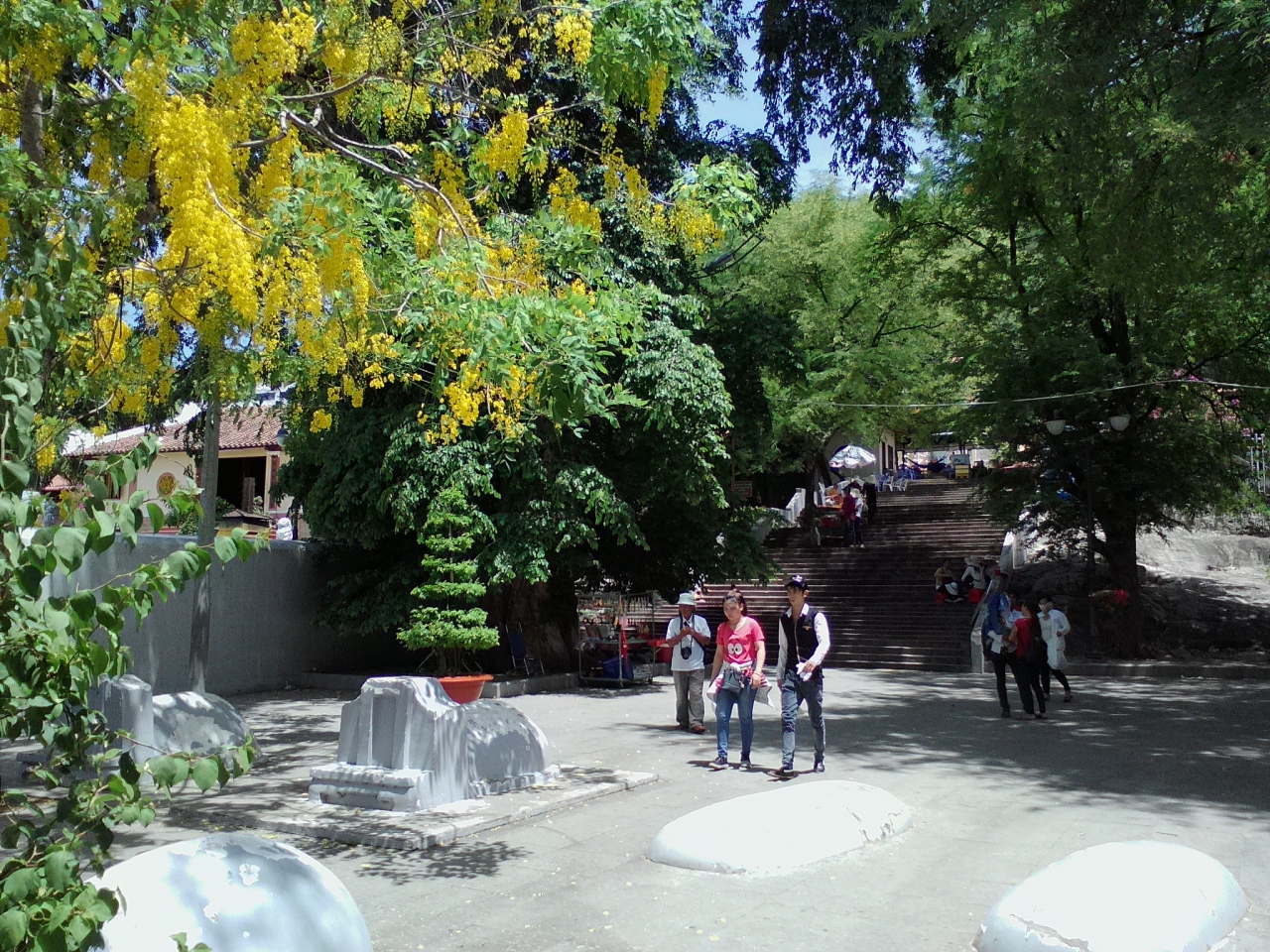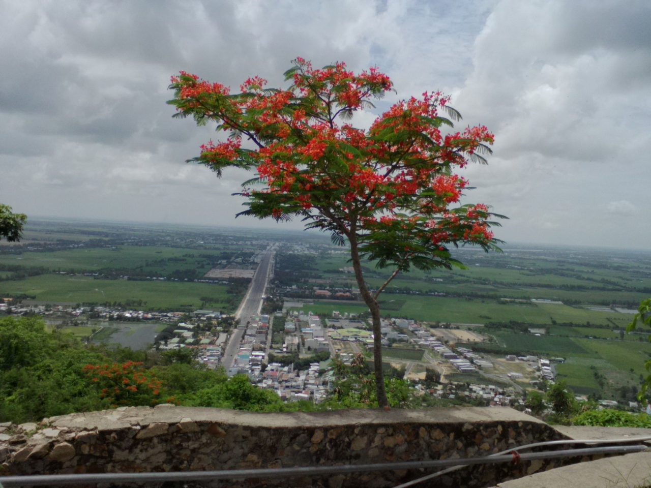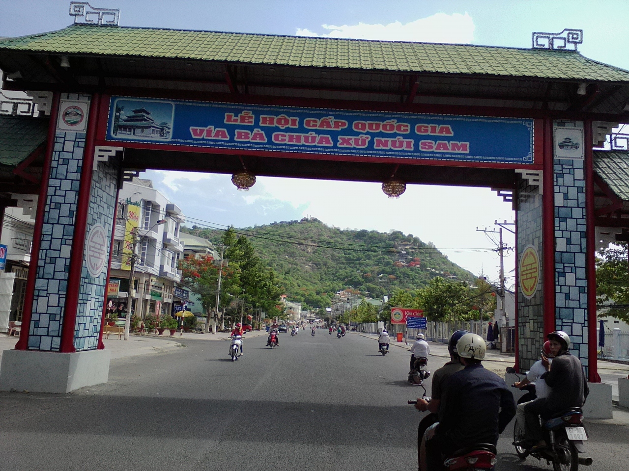 チャウドック市街南西約5kmにある高さ230mの山。麓にはいくつかの寺や廟、陵墓があります。特に“正面”側にある西安寺、バー チュアスー廟辺りが賑やかで土産物屋や露店、食堂が並んでいます。山の南東側からはバイク、車で行ける道路がありますがこれじゃつまらない。せび自分の脚で登って下さい。トァイ ゴク ハウ陵の右側から登山道がのびています。頂上までは約30分。途中、茶店などもあり結構楽しめます。頂上はあまり大したことはありませんが景色はいいです。