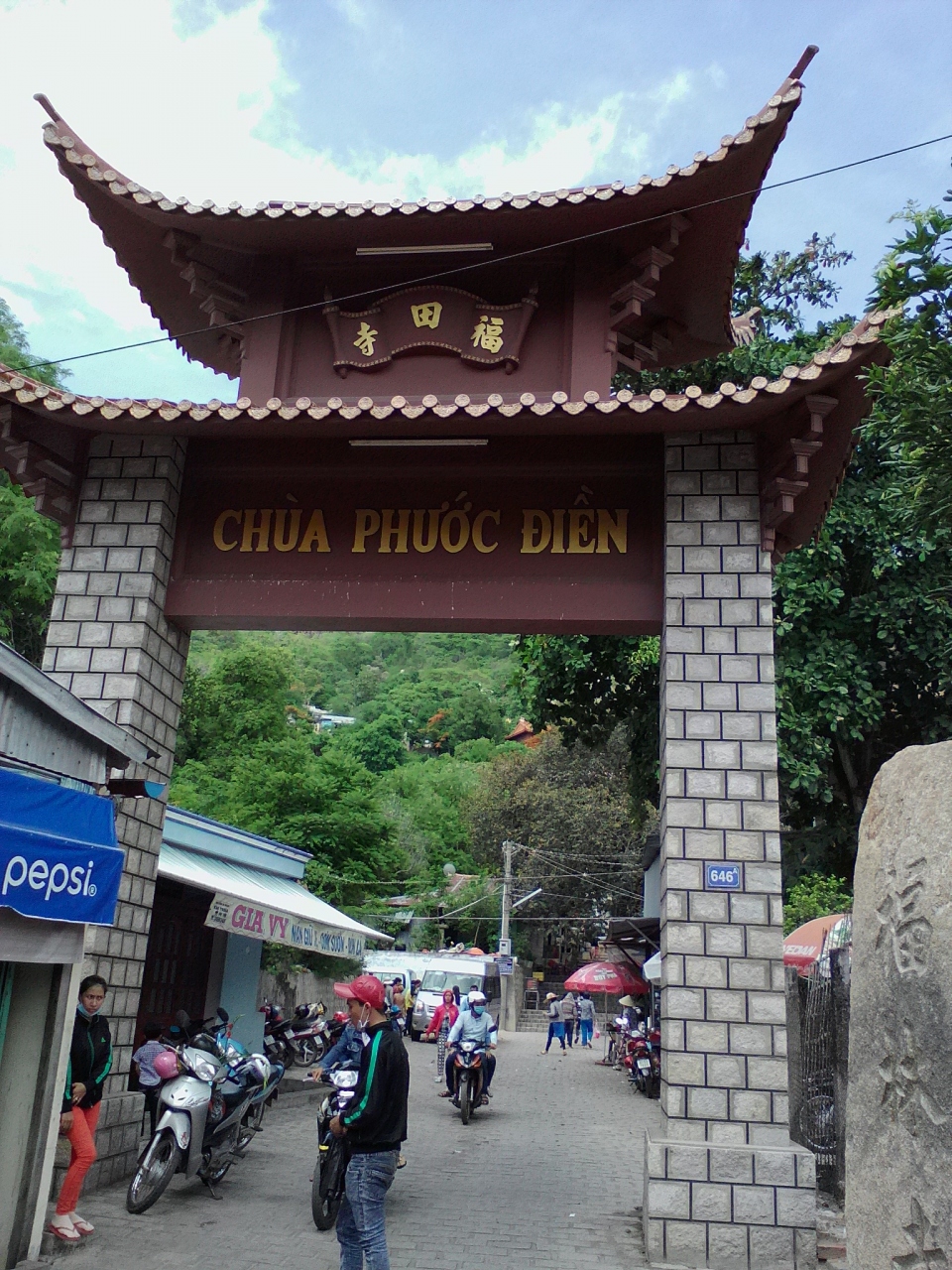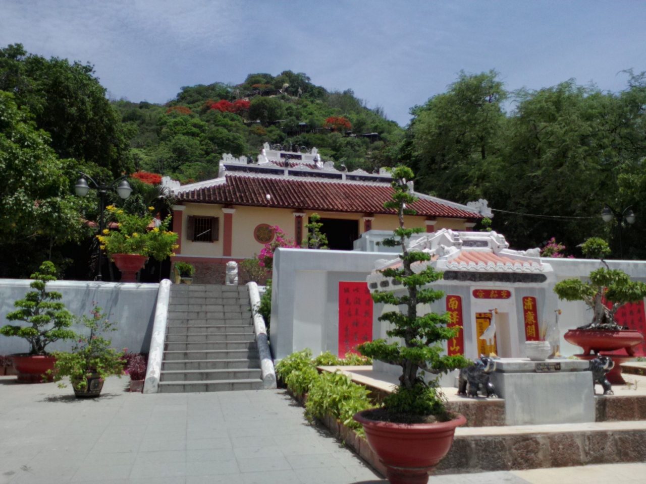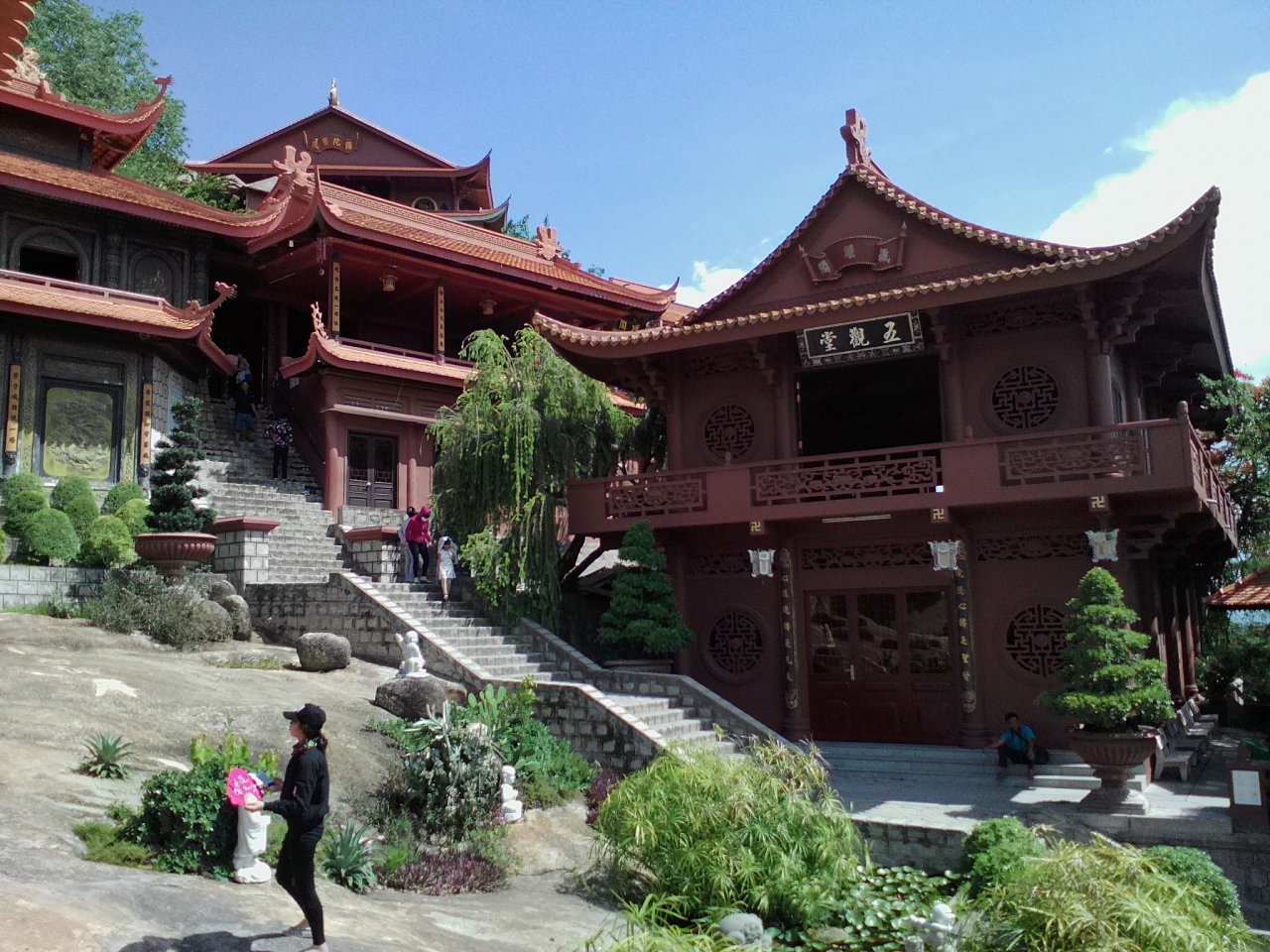 サム山西側(裏側)の中腹にあります。山頂からこちらに下る道はないので麓の道を回り込まなければなりません。入り口の門を入り長い階段を登るとお寺が見えてきます。