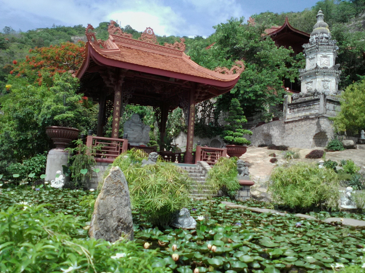 このお寺すごいです。とってもきれい、というか絵になる寺です。一面に水田風景が見渡せ眺めも抜群。これだけで十分満足していたのですが本堂内の裏手にはなんと洞窟が…。結構な規模です。内部は階段がありしっかり整備されていますが暗い!照明が全然足りてません。歩くにはほぼ手探り状態、途中何回か足を壁面にぶつけました。各所に仏像が安置されています。プチ探検気分が味わえて楽しいです。私の中ではチャウドックNo.1スポットです。- 旅行時期