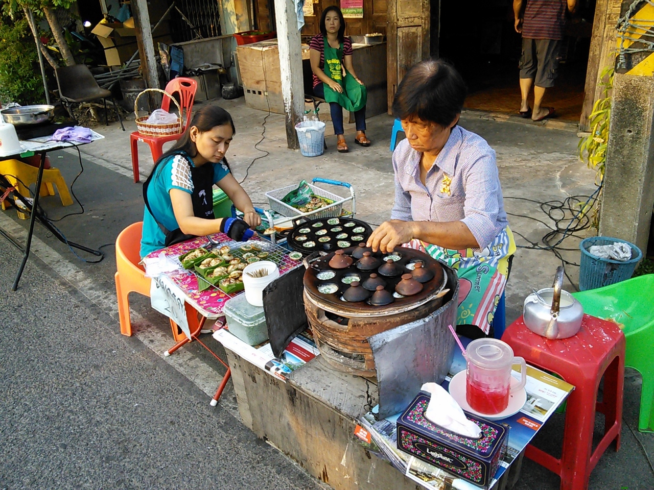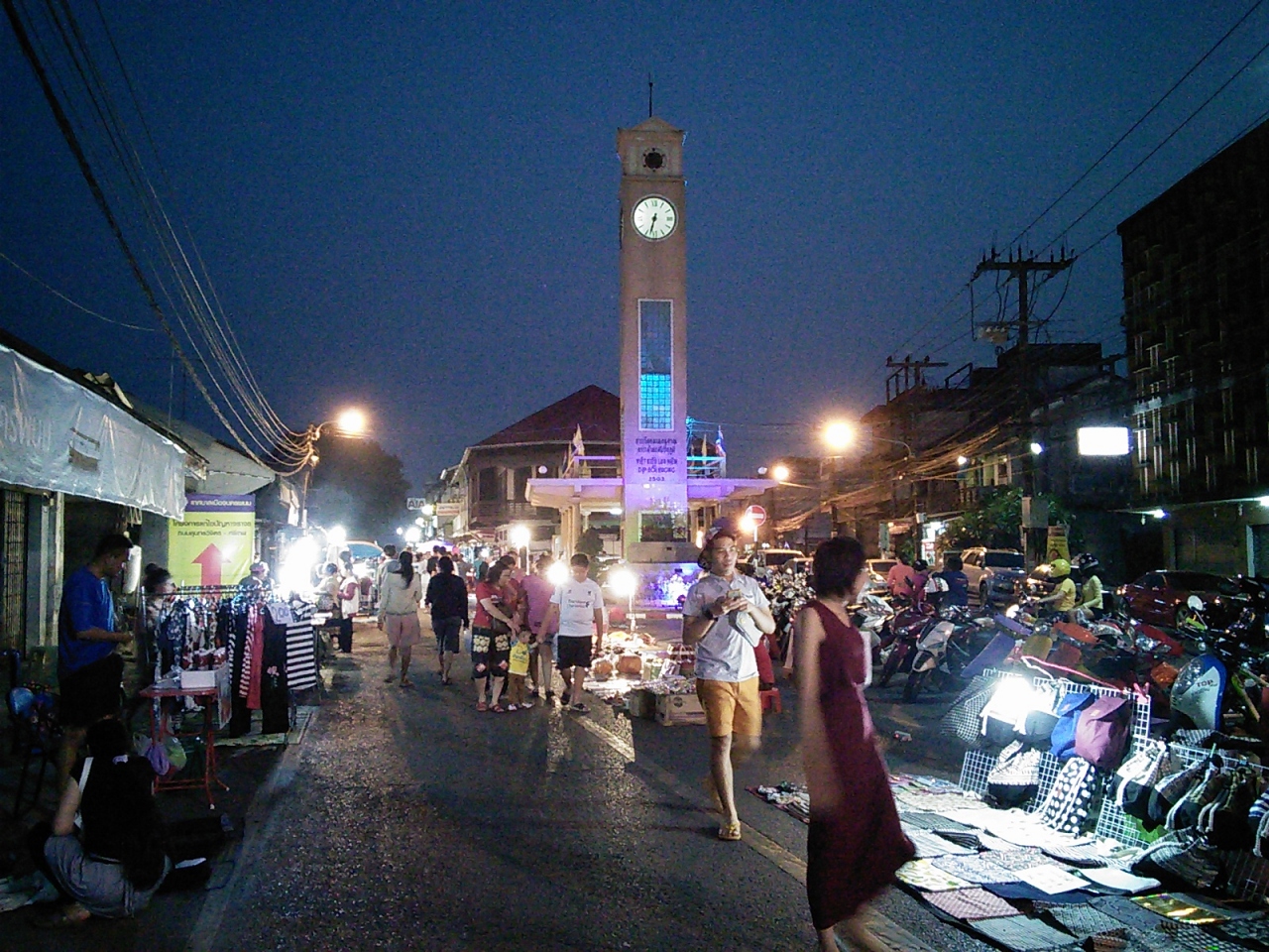 メコン川沿いのスントーン・ウィチット通り、ベトナム時計塔周辺には毎週金,土,日の夕方からナイトマーケットが開かれます。200mほどの区間が歩行者天国になり道の両側には食べ物屋台や衣類、アクセサリー、おもちゃ、ミニ盆栽?などの露店がずらりと並びます。家並みの感じと相まってどこかレトロな感じでとても雰囲気がいいです。食べ物を買ってメコン川を眺めながら遊歩道で食べるもよし、生演奏が行われているカフェや川にせりだしたテラスのあるレストランで食事をすることもできます。多くの地元っ子や観光客で賑わっています。