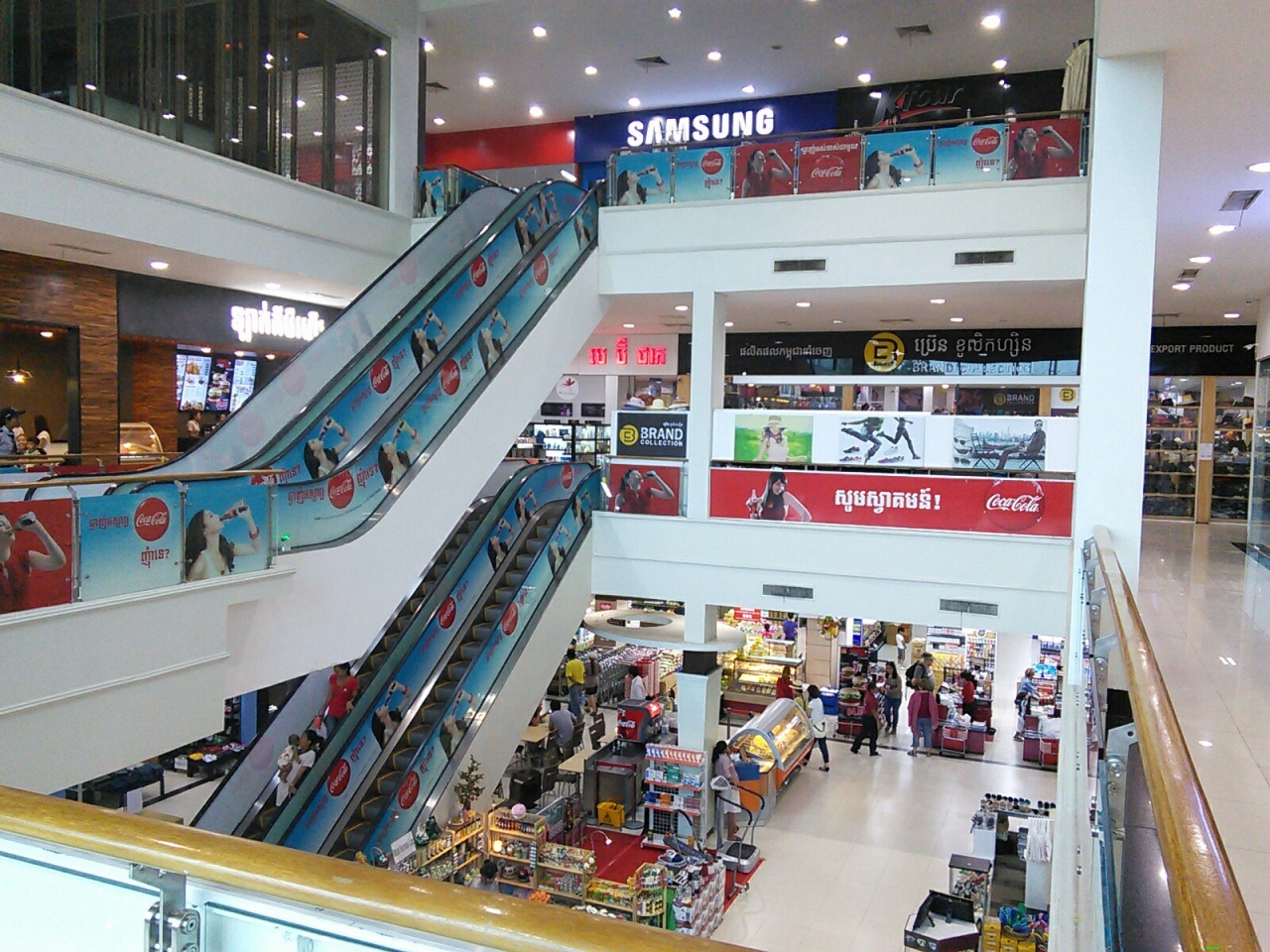 ラッキーモールの1階にある大きなスーパーマーケット。輸入食品が豊富に揃っています。タイ、中国、韓国食品に混じり日本食品もちゃんとあります。生タイプのうどんやふりかけ、日本酒、焼酎などなんちゃってではなく正真正銘の日本製品。日本ではまず買わないB級感あふれるサンガリア製品も…。麦茶、ウーロン茶の500mlPET(共に0.9ドル)、ボトル缶コーヒー(1.1ドル)。伊藤園のトマトジュース、野菜ジュースの900mlPET (共に3ドル)なんてのもありました。お土産類も少しあります。ココナッツクッキー、アンコールワットの描かれたTシャツ、キーホルダー、小銭入れ、置物、おしゃれな石鹸などなど。もちろんすべて値段表示があるので安心して買い物ができます。