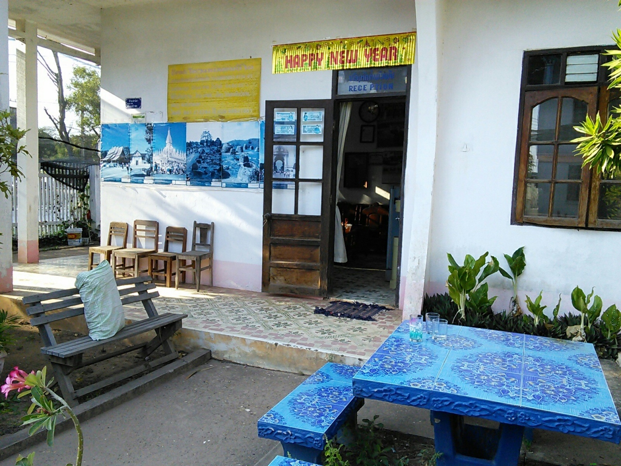 ネットをするために何回か使わせてもらました。昼時に行っても食事はできないと言われました。飲み物のみ。ラオコーヒー7000kip(アイスは10000kip)、コーラ(缶)、紅茶6000kipなど簡単なものしかありません。紅茶はリプトンのティーバッグがカップに入れられただけ。お湯もカップ六分目くらいしか入れてくれません。しかも砂糖もなし。言えばスティックシュガーを出してくれますがスプーンもわざわざ言わないともらえません。なんとも気の利かない店ですがそれも仕方ありません。店主は日本人なのですがかなり年配のおじいちゃんでよぼよぼでちょっと心配になる感じ。メニューを見るとカツ丼37000kipなどの日本食もありました。ディナーなら食べられるようです。WiFiは結構速く問題ありませんが停電の時は使えませんので先に確認した方がいいです。本が交換できますが日本語の文庫本はまったくありませんでした。